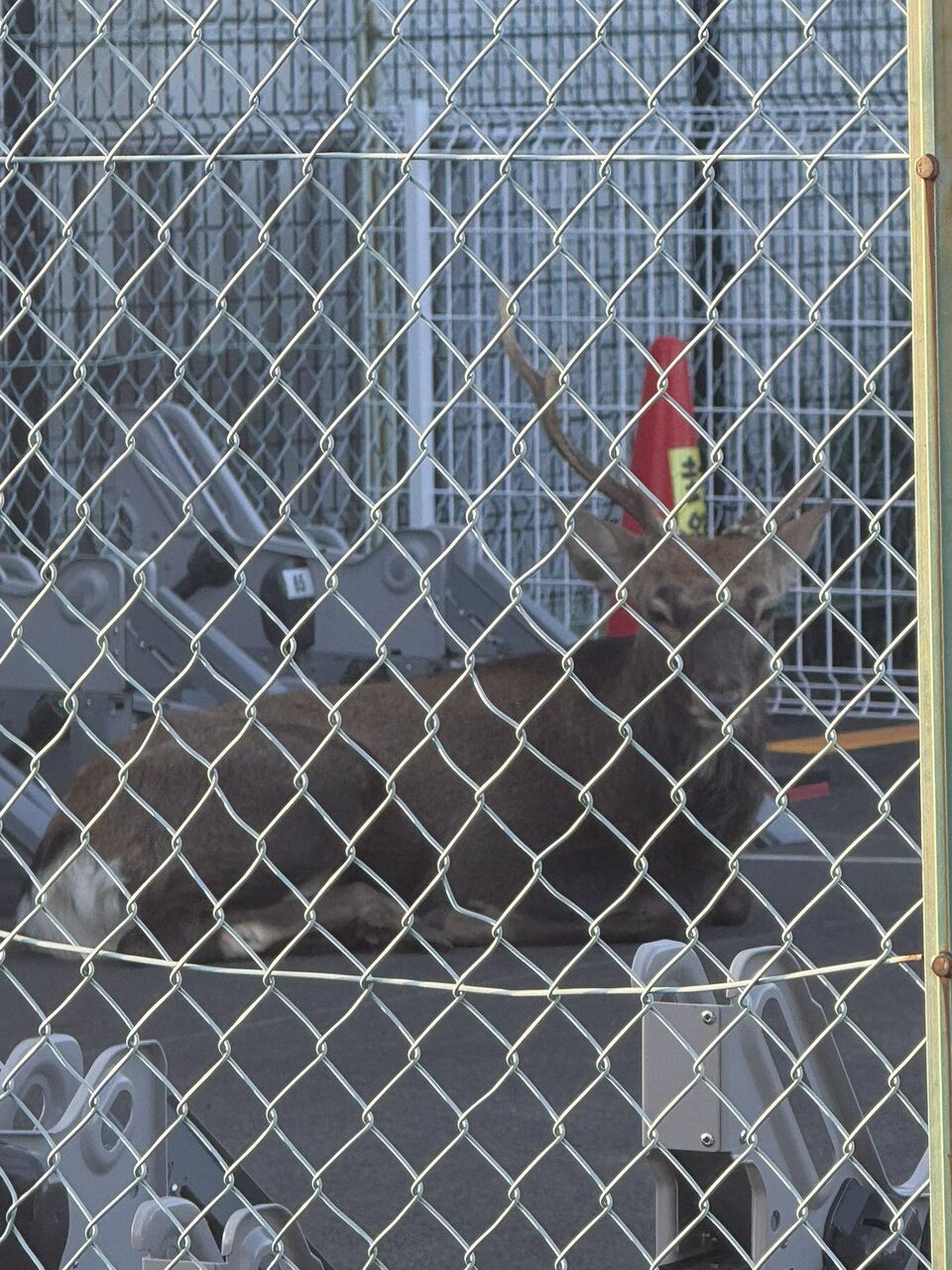 駅近くの駐車場に警察がテープで立入禁止にしてて何だ何だと思って見てみたら鹿が居た