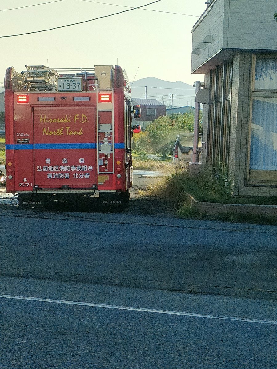 【火事情報】#交通情報 国道7号線沿い 青森県弘前市津賀野浅田 花咲温泉の駐車場で軽自動車燃える車両火災10月21日 #青森 #弘前 #火災