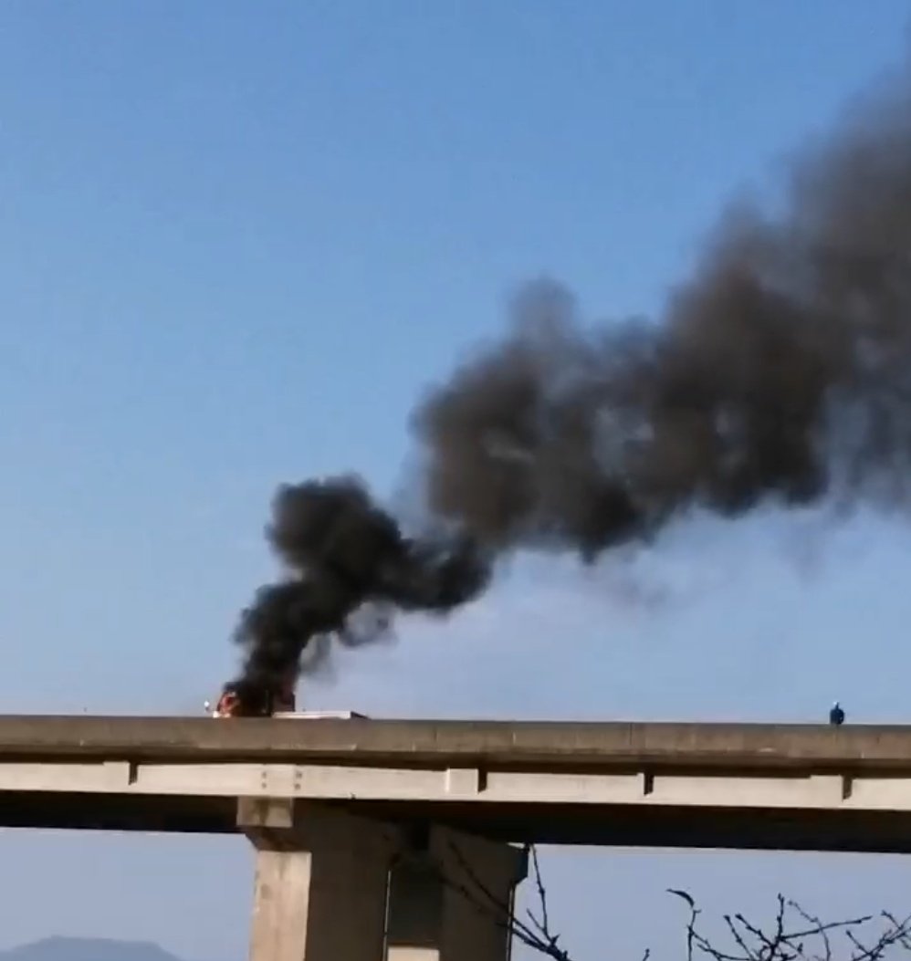 『長崎道の大村湾SAの手前でトラック燃えてた』