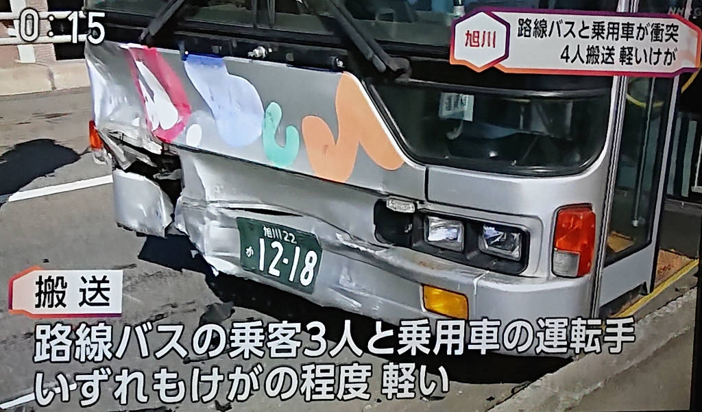 あら、旭川でバスが絡む事故だそう。