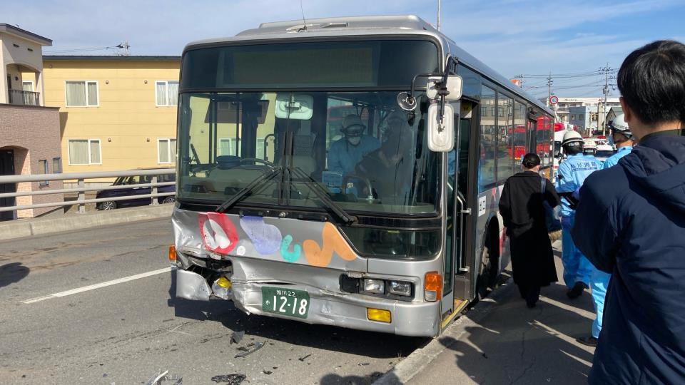 北海道旭川市で路線バスと乗用車が衝突する事故があり、4人が病院に搬送されました。