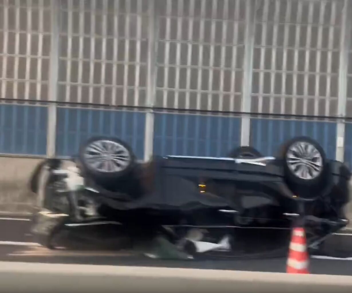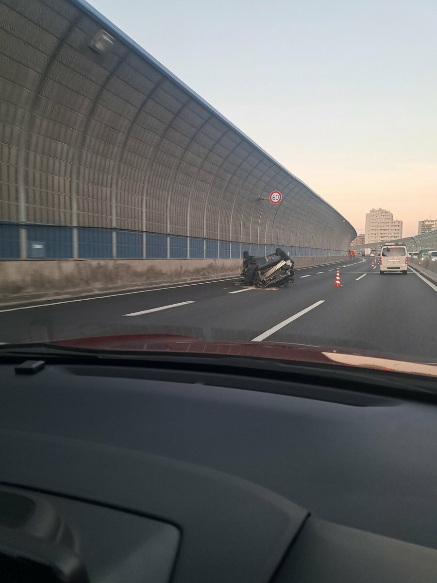 京葉道上り、花輪〜船橋料金所間でハリアーっぽいのがひっくり返ってる。