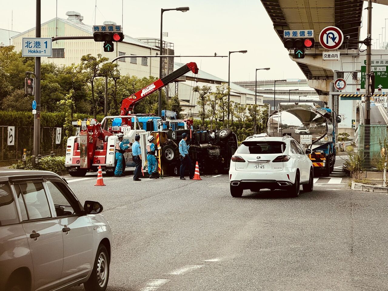 『北港通りの大渋滞はトラックが横転する事故のせいでした』