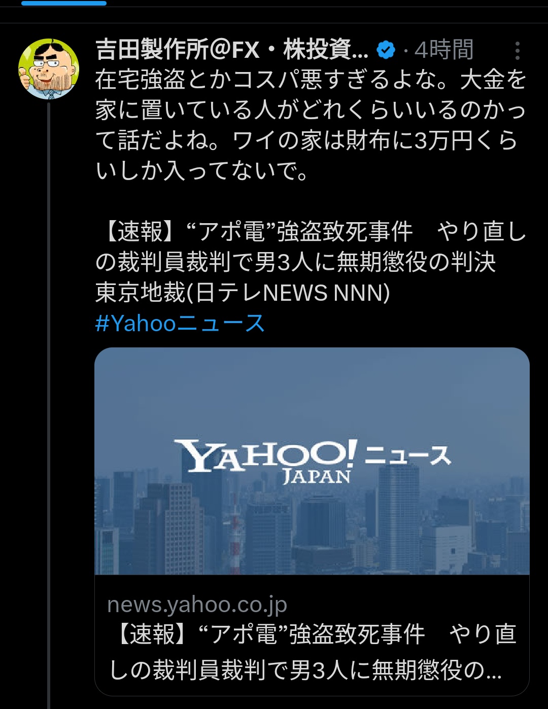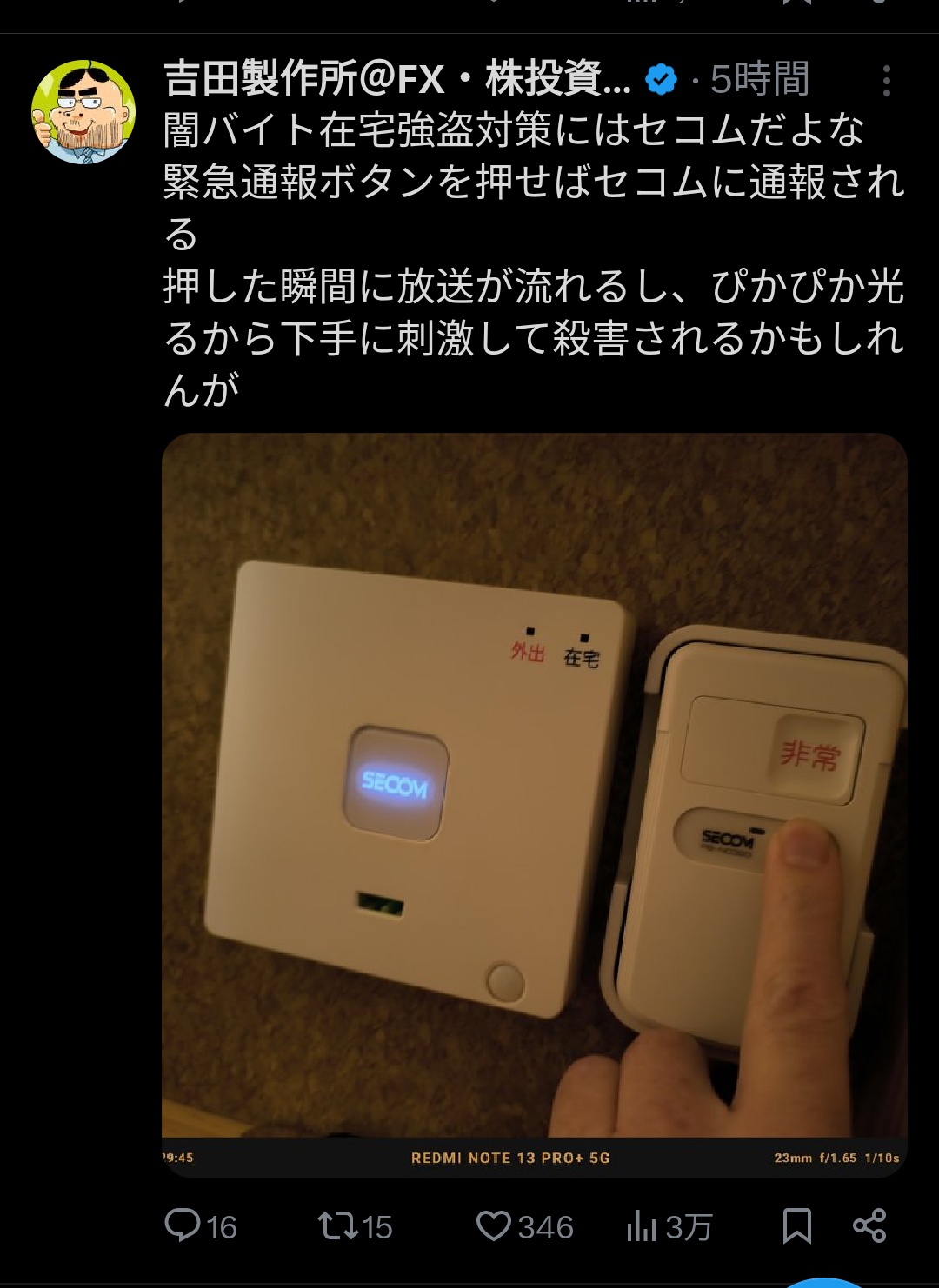 【画像】家バレしてるYoutuberさん、闇バイト襲撃対策をはじめる ← 想像以上に“本気”だと話題に。。。 2024/10/23 速報 1: やっぱりYoutuberってリスクあるんやな🥺 document.write(” + ”); 関連記事 document.write(” + ”); 続きを読む ——— Source: アルファルファモザイク 【画像】家バレしてるYoutuberさん、闇バイト襲撃対策をはじめる ← 想像以上に“本気”だと話題に。。。