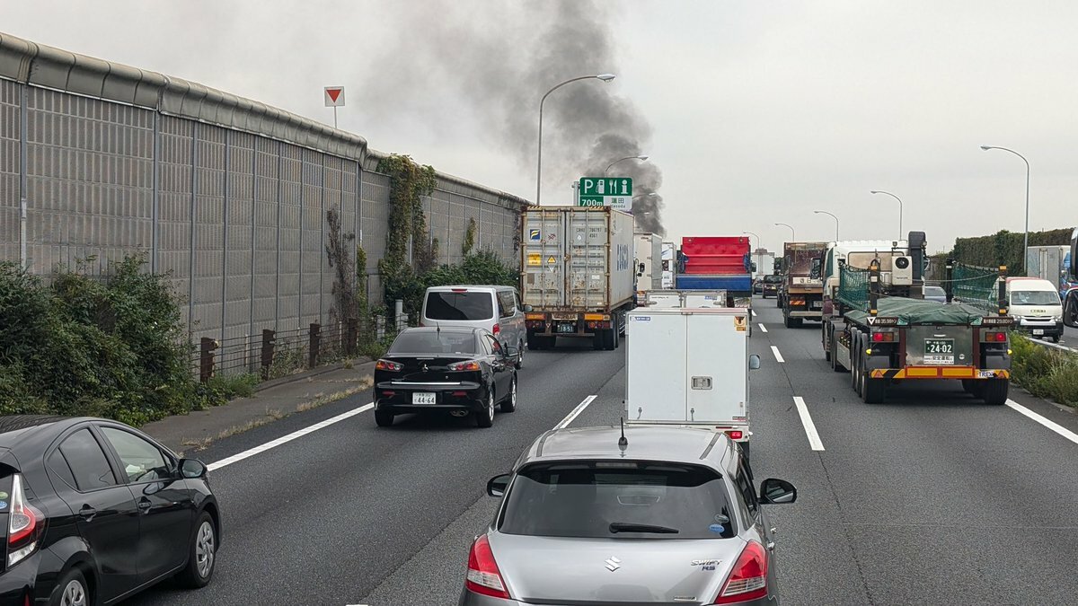 【現場の様子】#交通情報 #東北道 上り 蓮田SA手前付近 トラック燃える車両火災事故で規制渋滞10月23日 #渋滞 #埼玉 #火災