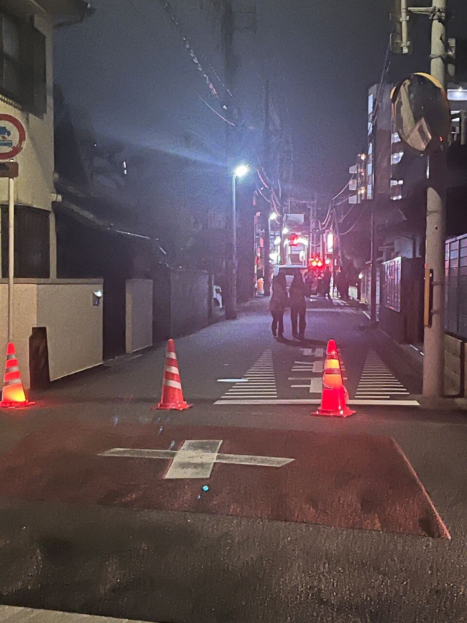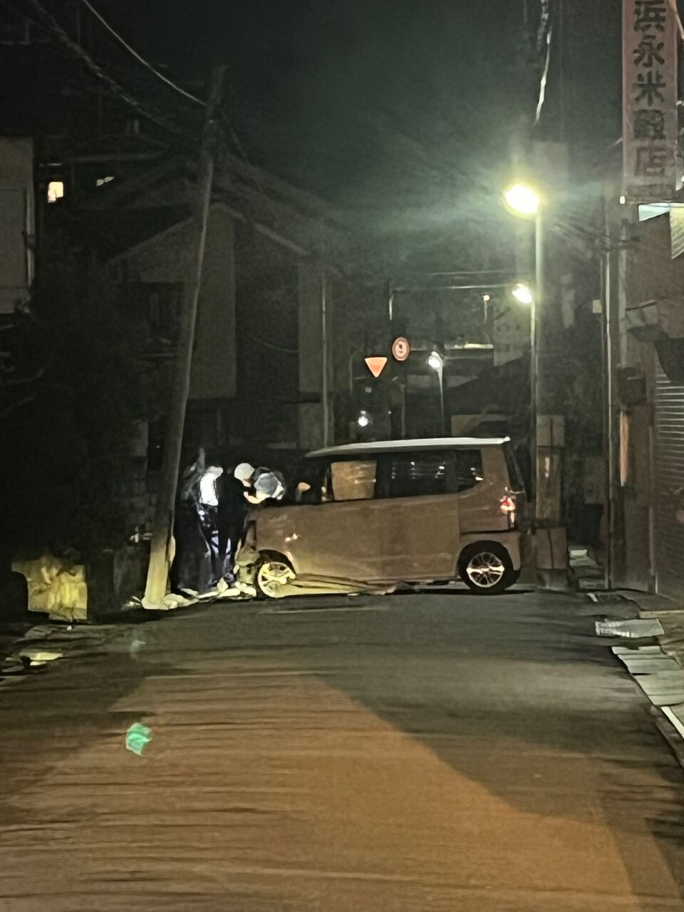【現場の様子】#交通情報 大阪府泉佐野市鶴原4丁目 #南海本線 鶴原駅北西付近 道路塞ぐ軽自動車事故で交通規制10月23日 #大阪 #泉佐野