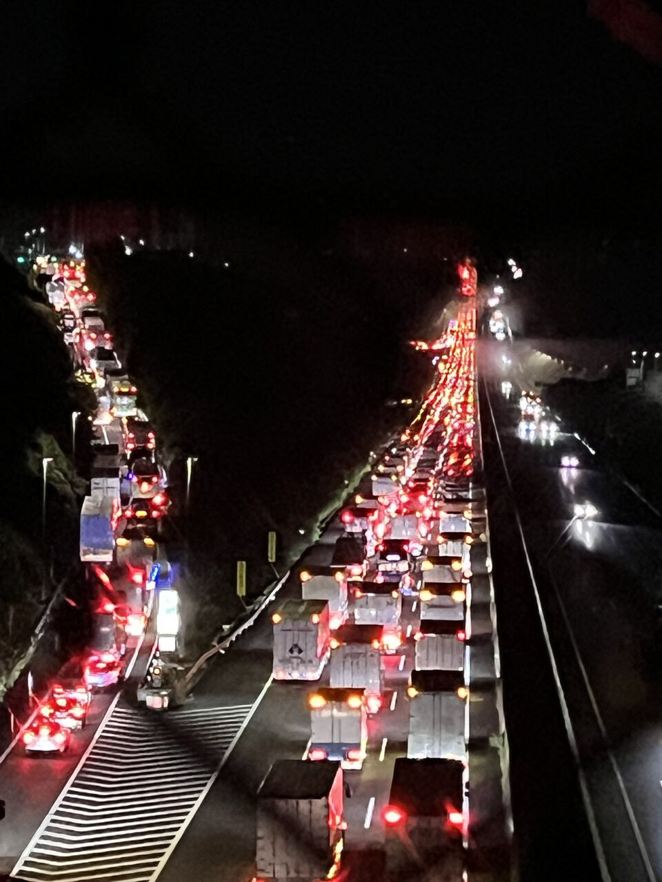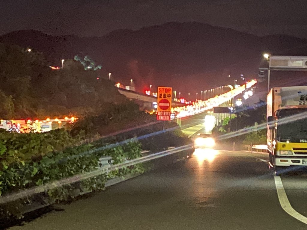 【現場の状況】#交通情報 #新東名 下り 浜松SA→浜松いなさJCT付近 東名の車両火災通行止めと工事と衝突事故が重なり一時深夜早朝に大渋滞10月24日 #渋滞 #静岡 #浜松