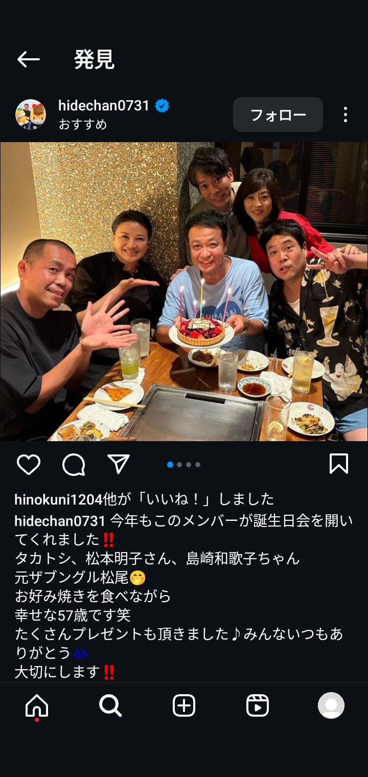 【画像】中山ヒデちゃんの誕生日会、メンツがヤバすぎる模様wwww 2024/10/24 速報 1: ええやん https://www.instagram.com/hidechan0731/p/C-GaAx7TrSf/?img_index=1 document.write(” + ”); 関連記事 document.write(” + ”); 続きを読む ——— Source: アルファルファモザイク 【画像】中山ヒデちゃんの誕生日会、メンツがヤバすぎる模様wwww