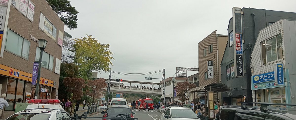 【現場の状況】『緊急車両出動で駅前道路渋滞』#小田急小田原線 玉川学園前駅で人身事故 #小田急線 #東京メトロ千代田線 など遅延10月25日 #小田急