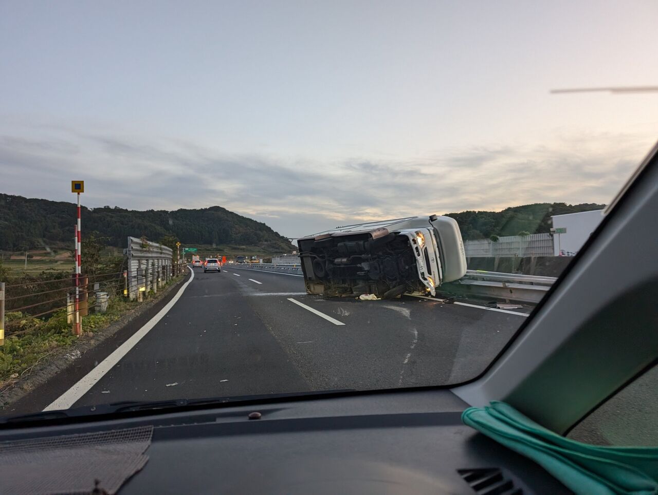 【現場の様子】#交通情報 #東北道 上り 福島西IC→二本松IC付近 車線塞ぐ横転事故で一時通行止め渋滞10月25日 #渋滞 #通行止 #福島