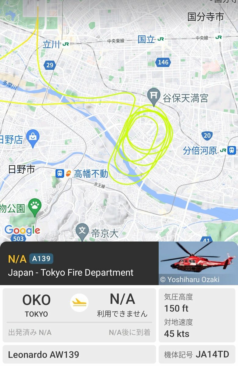 ヘリコプターの音がうるさいと思ったら、国立府中インターあたりで何かあったらしい。