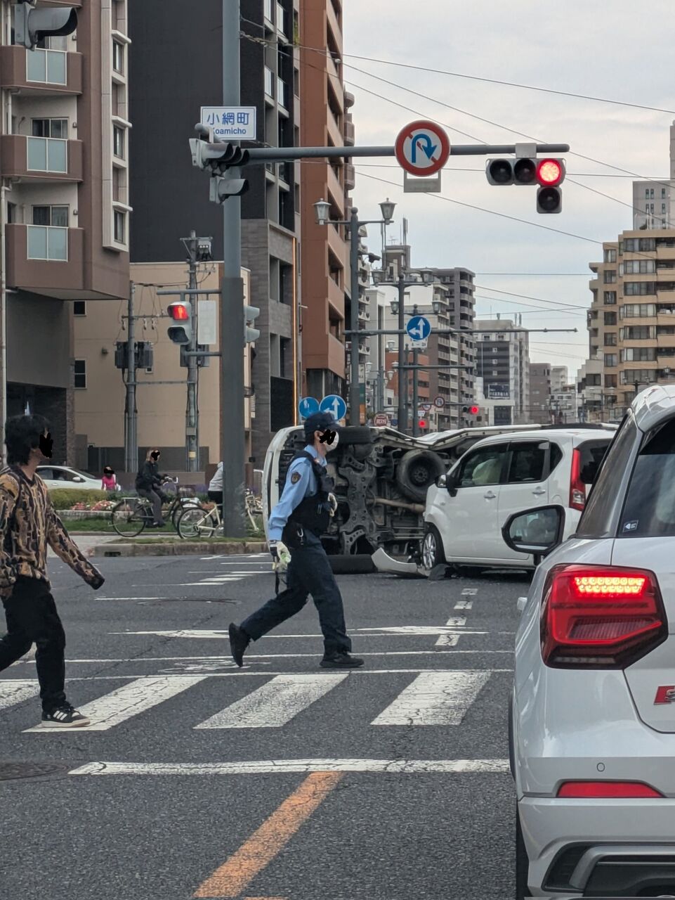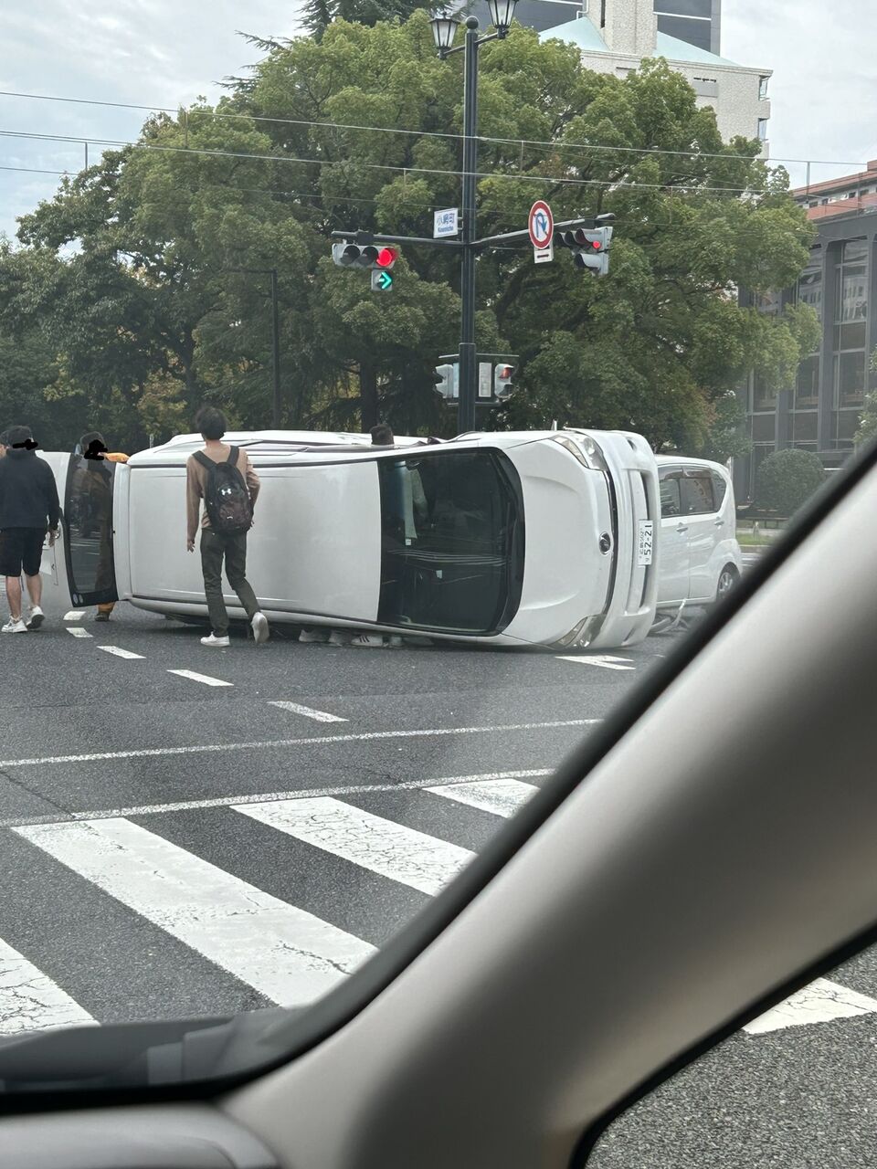 【現場の様子】#交通情報 平和大通り 広島市中区小網町交差点付近 車線塞ぐ衝突横転事故で規制渋滞10月26日 #渋滞 #広島 #中区