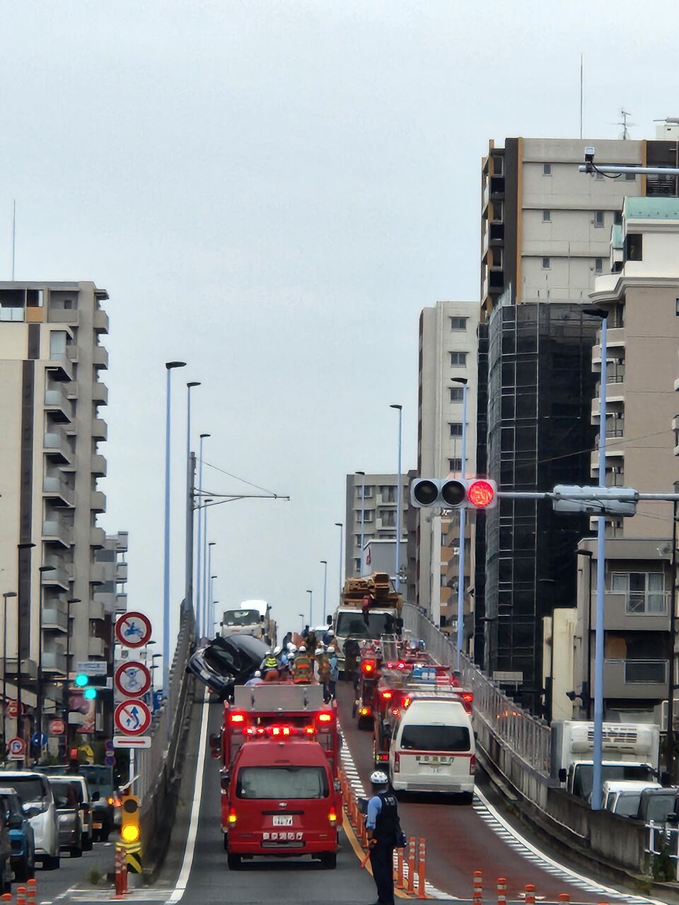 『新小岩陸橋上下線共に通行止め蔵前橋道路大渋滞』
