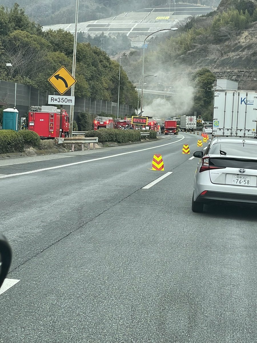 【現場の様子】#交通情報 #東名高速 下り 大井松田IC→鮎沢PA付近 トレーラーから煙あがる車両火災で渋滞3月7日 #渋滞 #東名 #火災