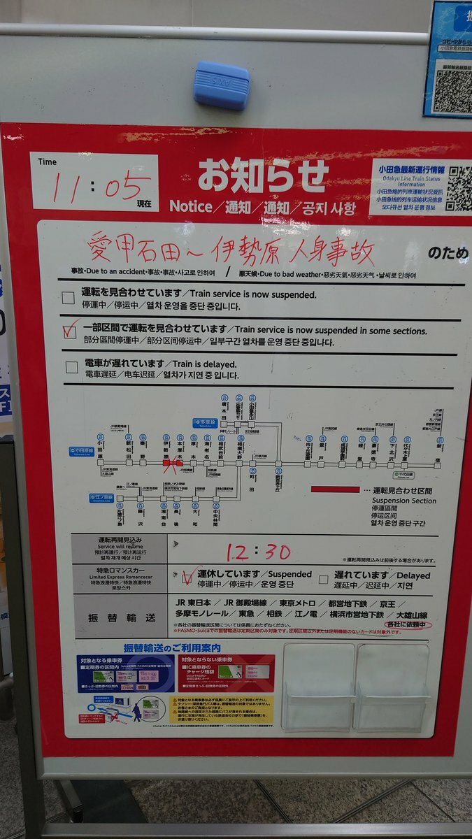 人身事故でロマンスカー運休になってる pic.twitter.com/fG0XcA6ogW