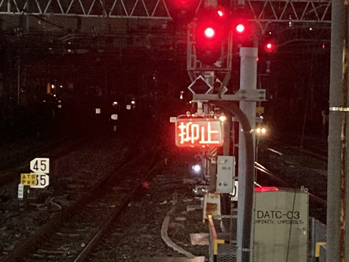 品川駅の線路上で人が立ち入り、からの座ってるとかで電車止まった。え、何で座ってるん?