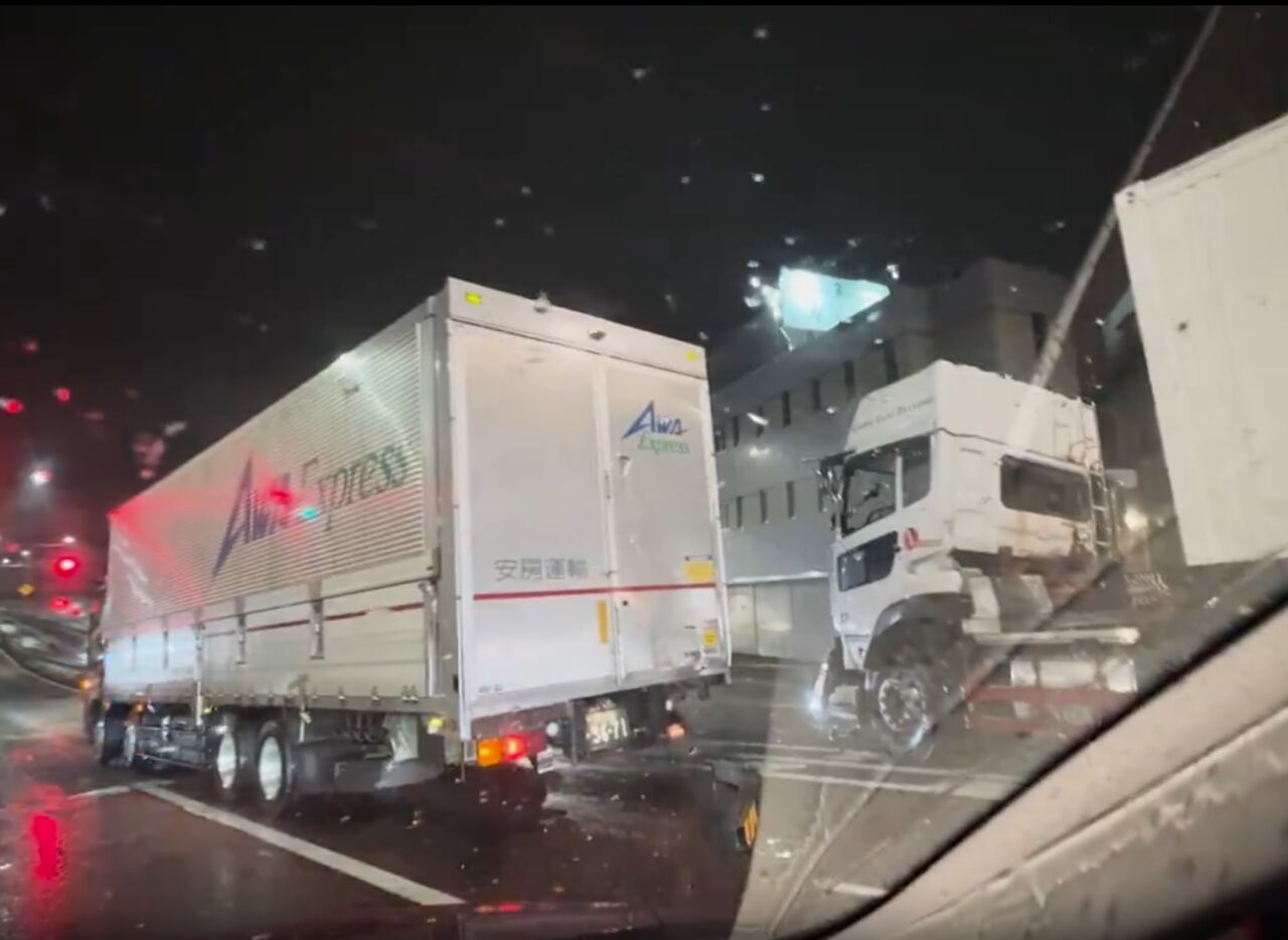 246、新道馬絹で信号待ちの大型トラックに大型トラックが突っ込んでた ..