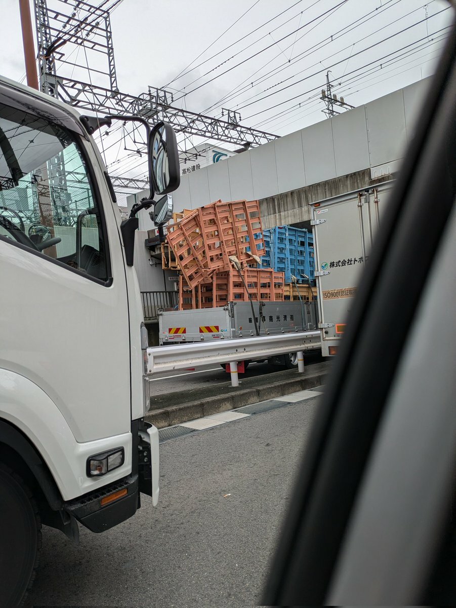【現場の様子】#交通情報 淀川通り 大阪市淀川区阪急十三駅付近 高架下トラック積荷衝突事故で車線規制渋滞 4日前にも同じ場所で事故10月28日 #渋滞 #大阪 #淀川 #十三