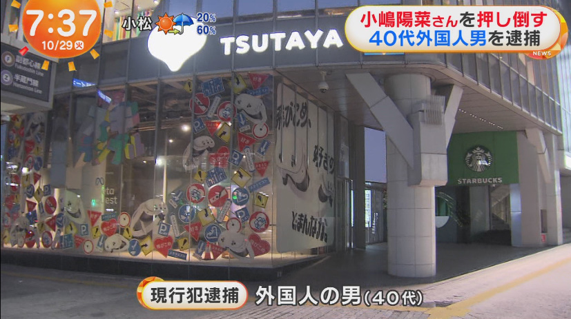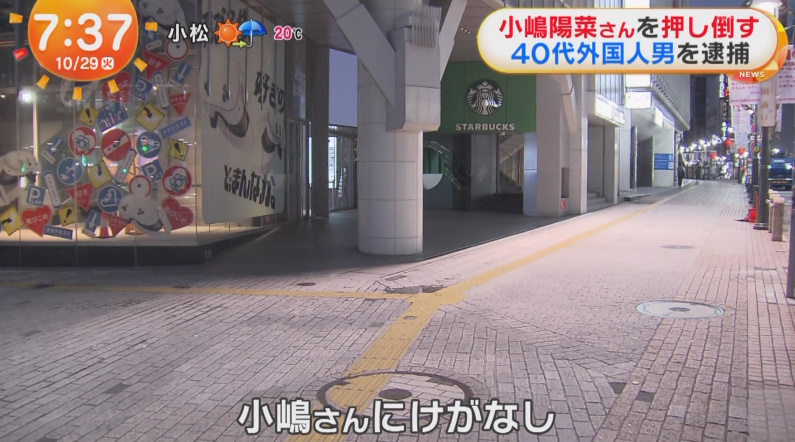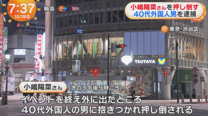 小嶋さんは当時渋谷区でイベントを行っていましたが突然、ファンとみられる40代の外国籍の男に抱きつかれそのまま路上に押し倒されたということです。小嶋さんにケガはありませんでした。