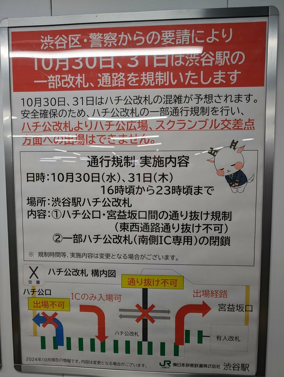 ハチ公も立ち入り禁止。 pic.twitter.com/DBSpNHFWtY— キラくま🐻 (@k_kirakuma) October 30, 2024