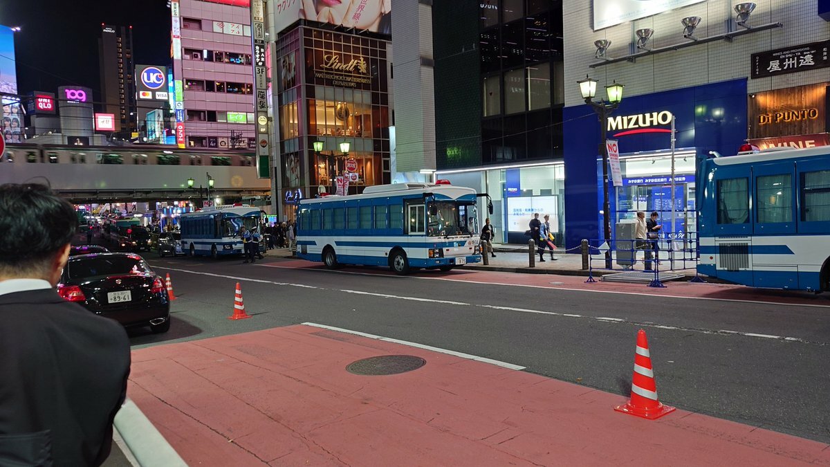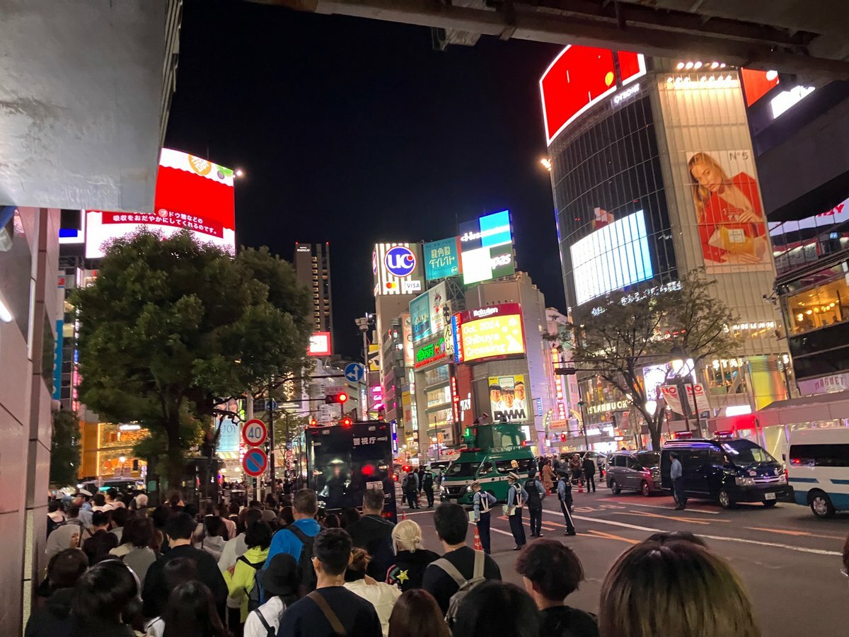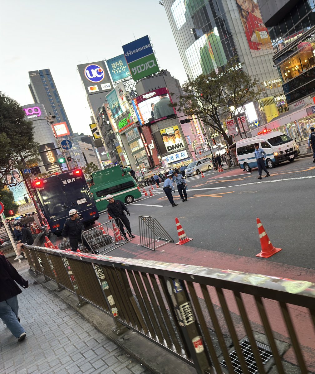 『ハロウィンの影響で渋谷駅のハチ公口が封鎖。警察の方々が誘導してくれて助かる』