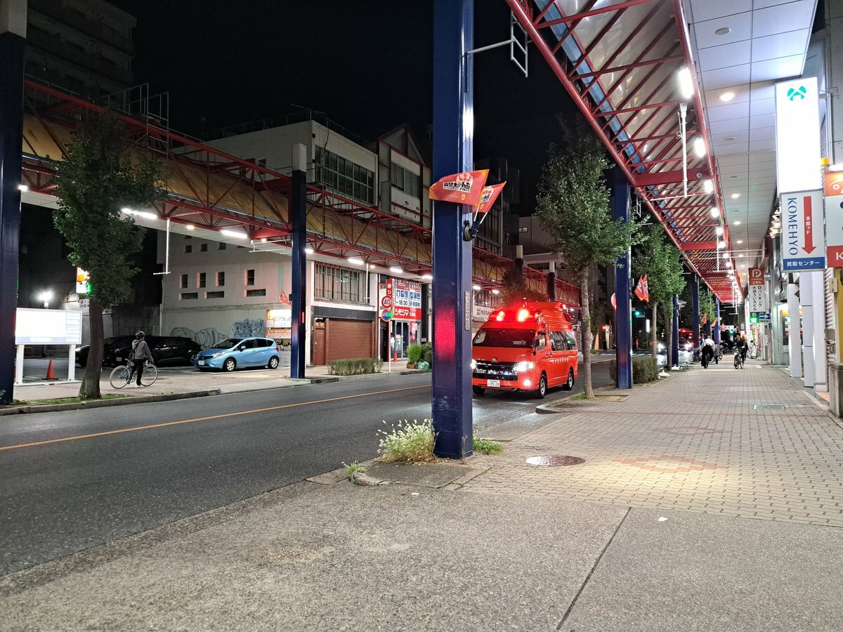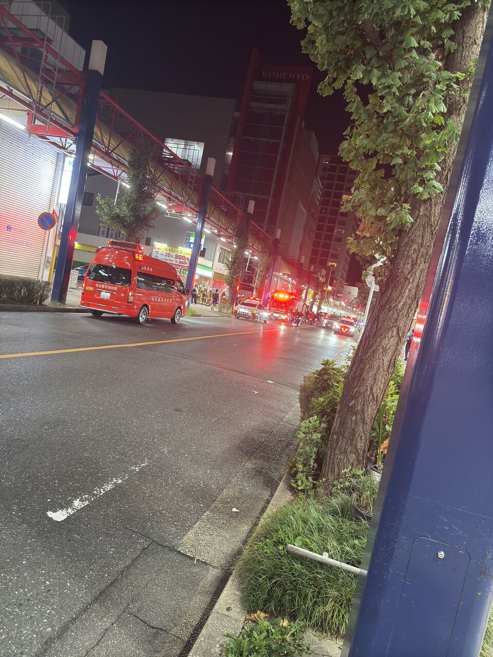 大須のアーケードのところのファミマにパト4台と消防車来てるんだけど何事