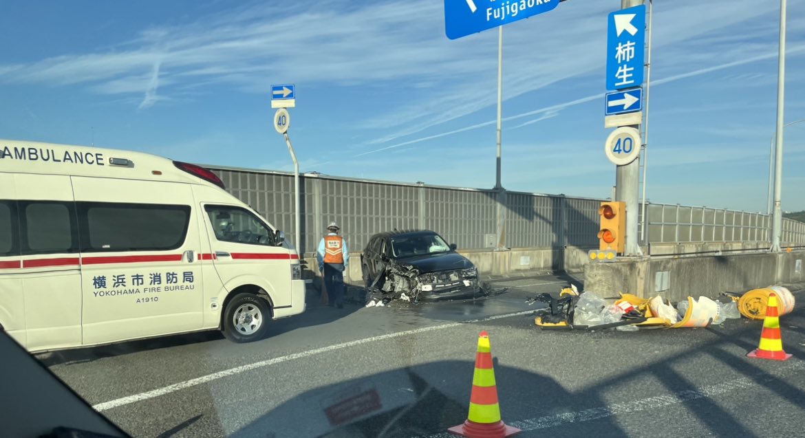 横浜青葉出口で事故 pic.twitter.com/xAOE0OELjX