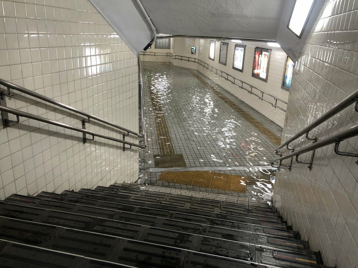 いつも出勤する時地下道通ってるんだけど、水没してて行けなかった😳遠回りきちぃ