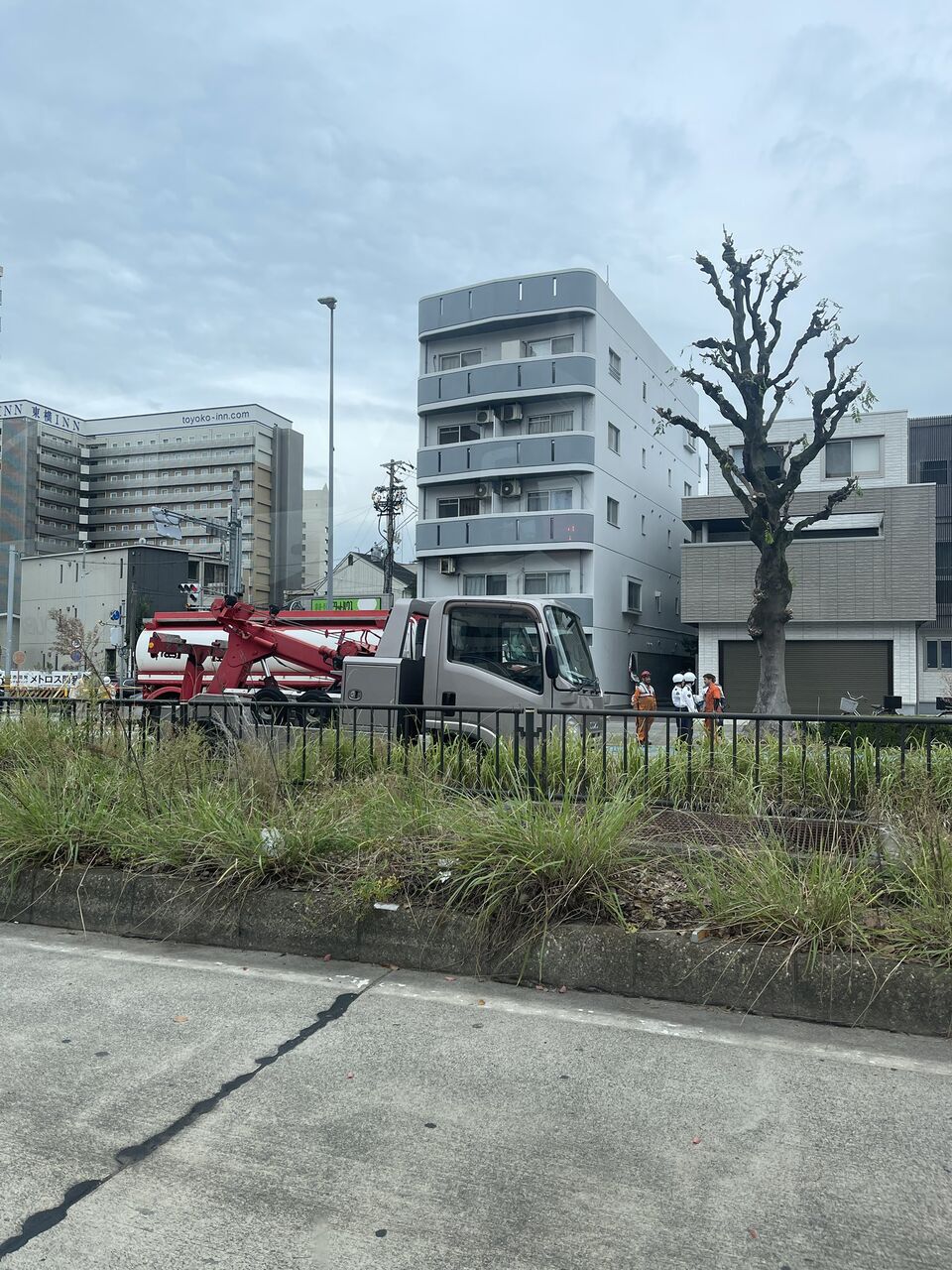 『金山駅近くの国道?19号線のとこで緊急車両めちゃくちゃいて大渋滞してた、、、』