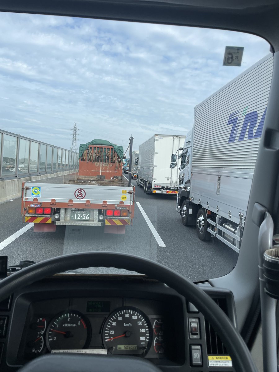【現場の様子】『大型トラックに乗用車が挟まれてる』#交通情報 #圏央道 外回り 白岡菖蒲IC~久喜白岡JCT付近 大型トラックや乗用車など複数台絡む衝突事故で車線規制渋滞11月1日 #渋滞