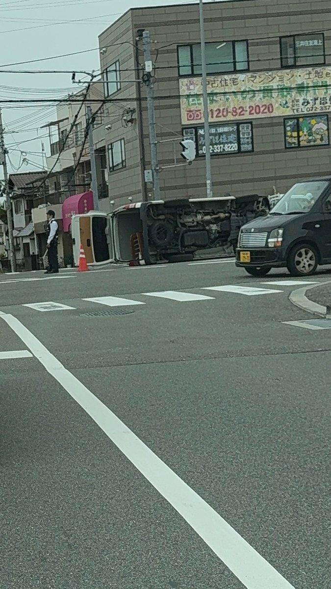 『大阪市内方面ハンズマンの先でハイエース横転事故で大渋滞』