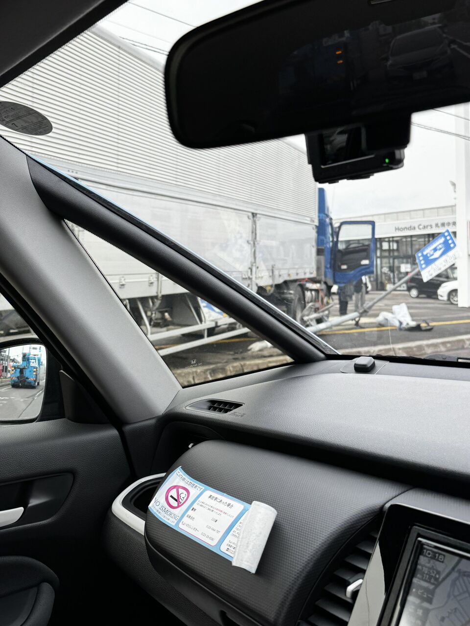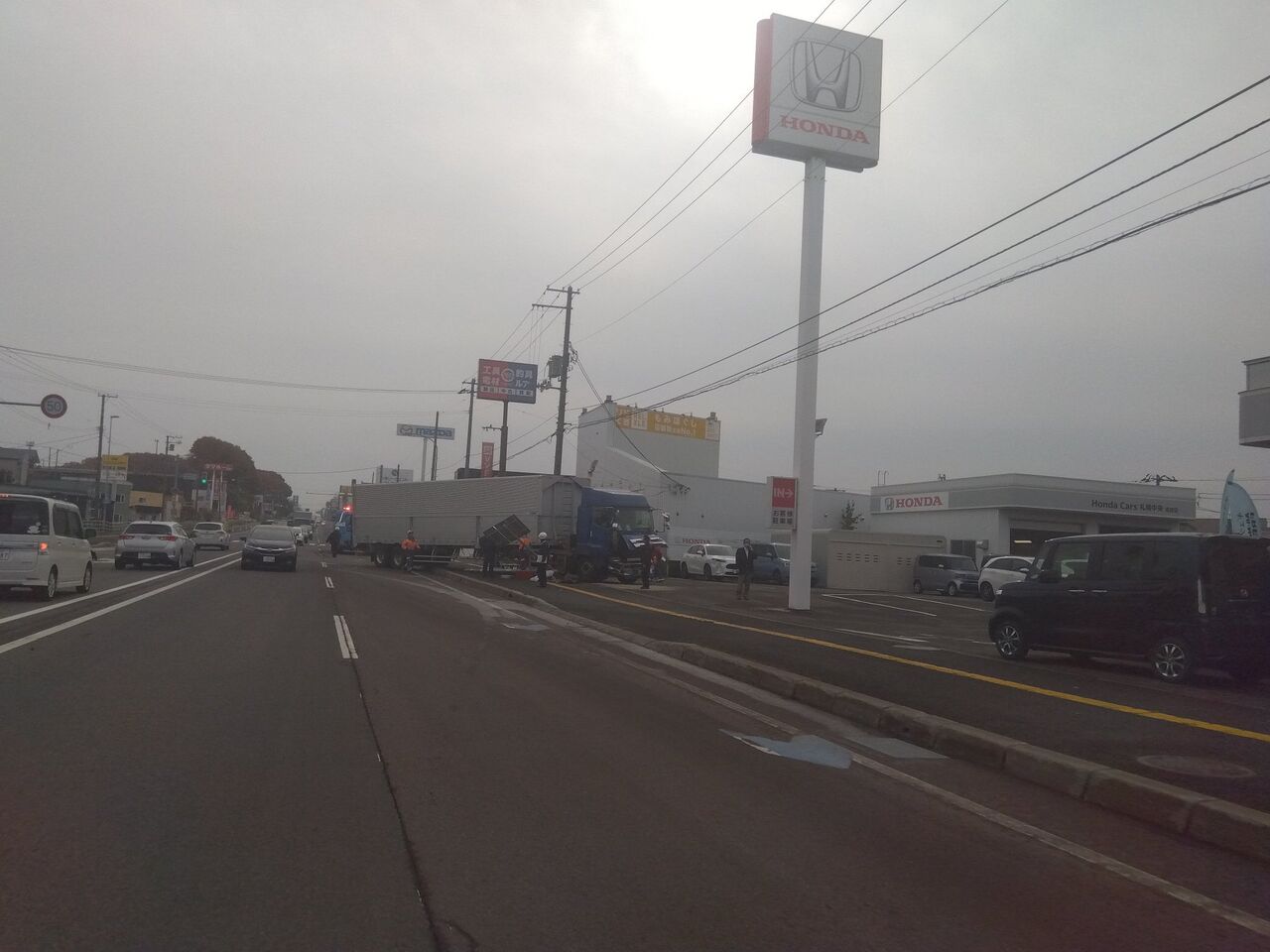 【現場の様子】#交通情報 国道36号線 札幌市清田区真栄1条2丁目ホンダ札幌中央清田店付近 大型トレーラー歩道に突っ込む衝突事故で規制渋滞11月2日 #渋滞 #札幌 #3連休
