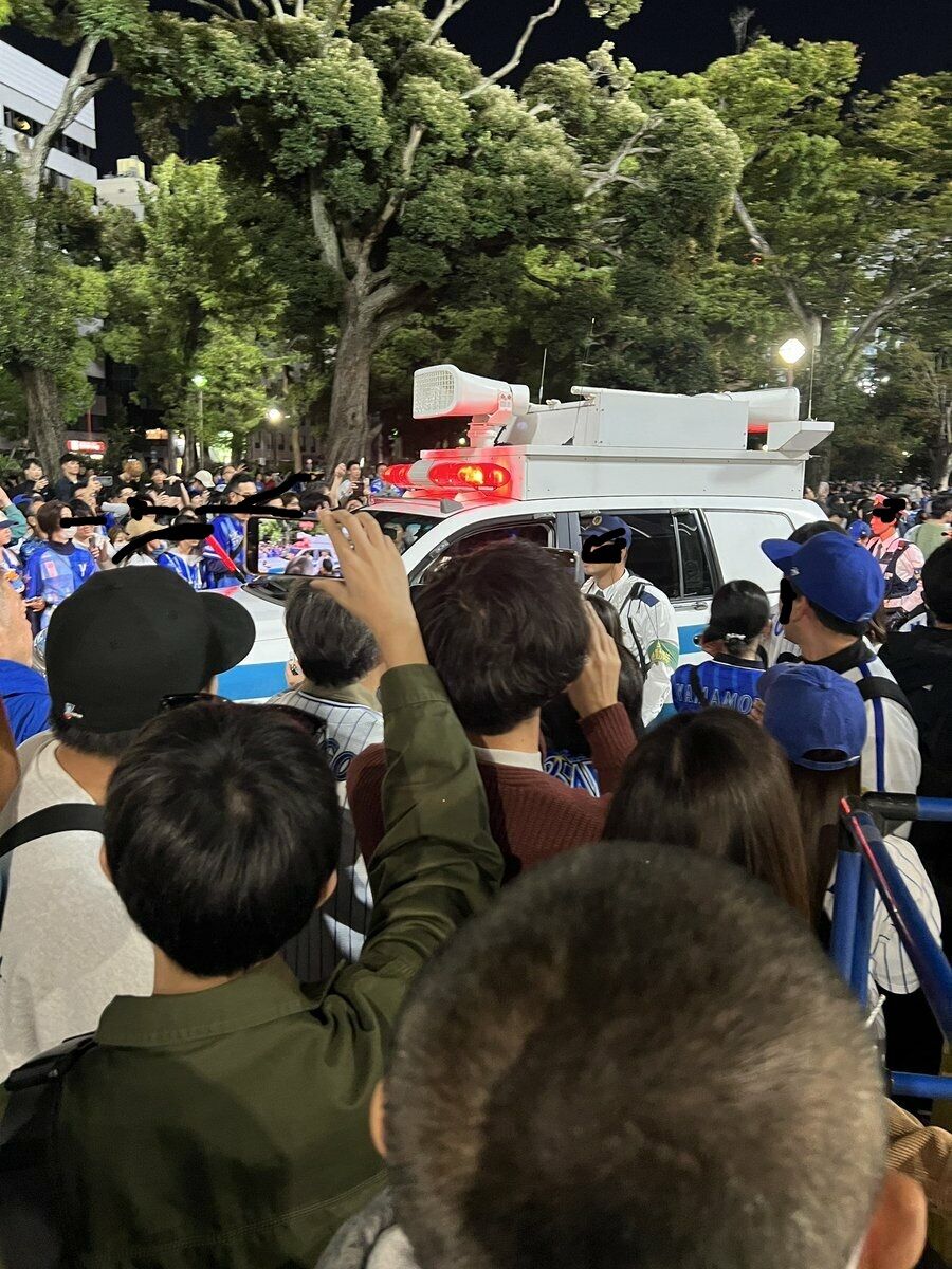 横浜公園に人が集まりすぎてDJポリス登場#baystars pic.twitter.com/GyYSsjasXn