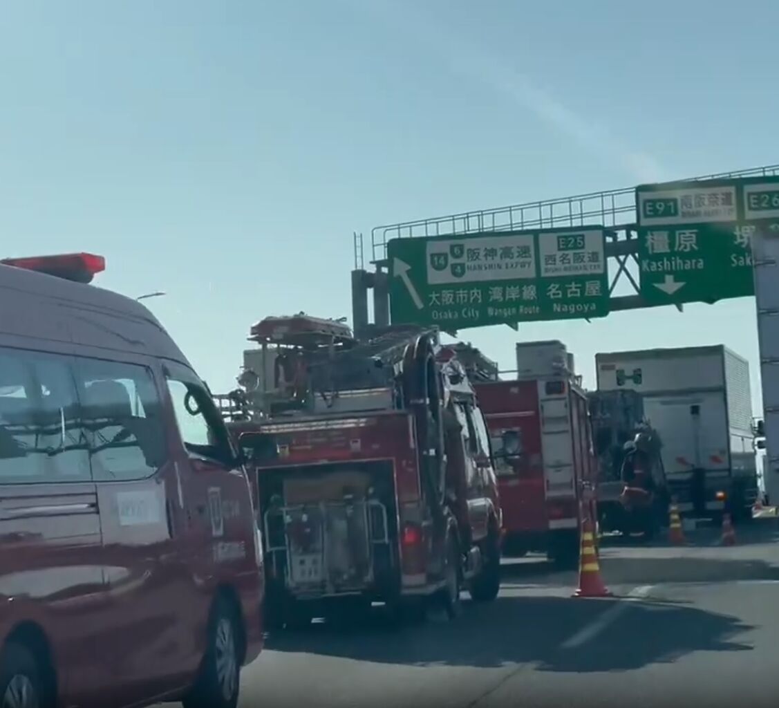 近畿道 松原ジャンクションの万名の車線でトラック止まってて消防車何台も来てたけどなんかあったんかな…