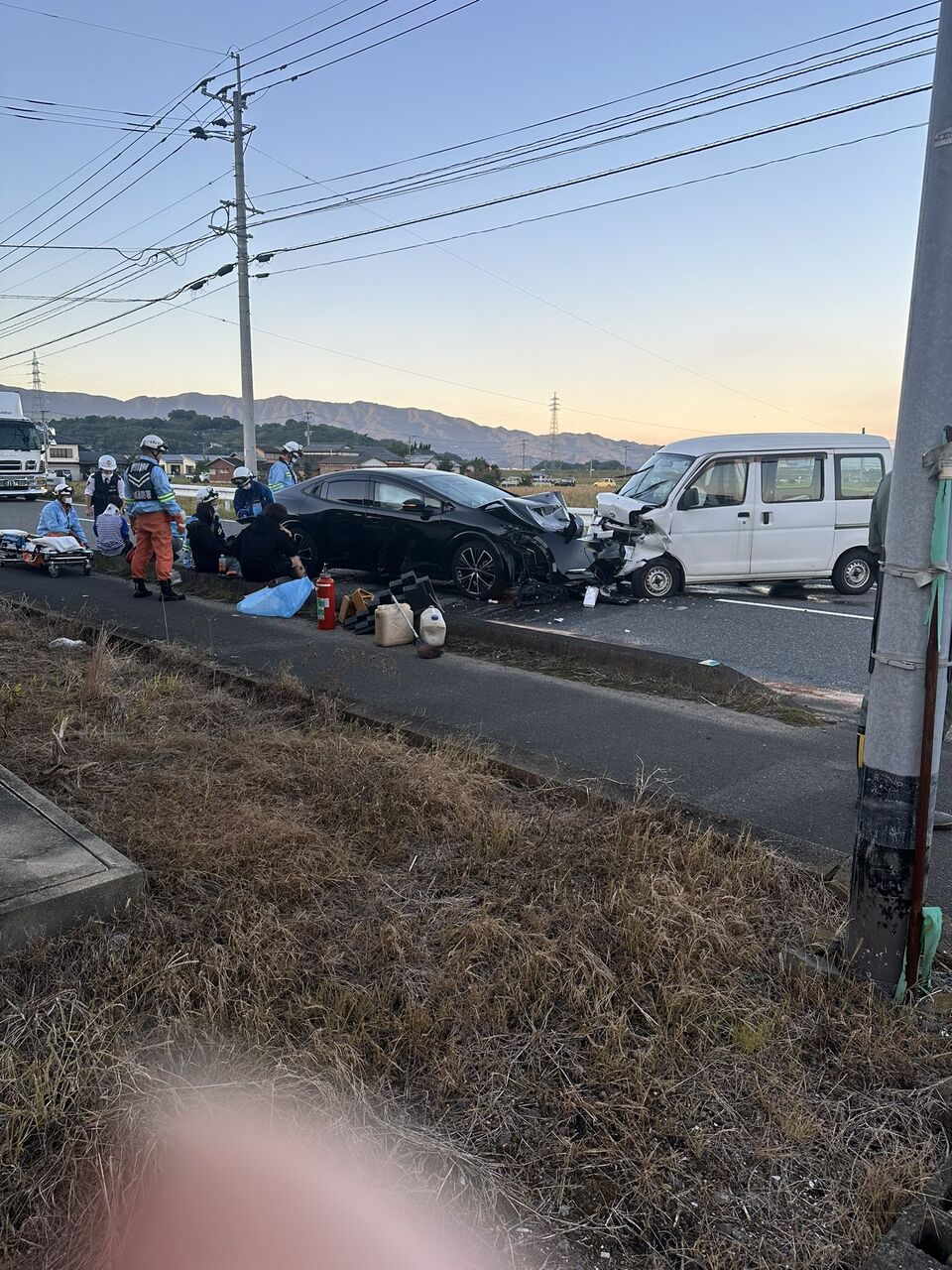 【現場の様子】#交通情報 県道284号線 佐賀県小城市牛津町 34号交差点北側付近 車線塞ぐ正面衝突事故で交通規制11月4日 #佐賀 #小城 #3連休