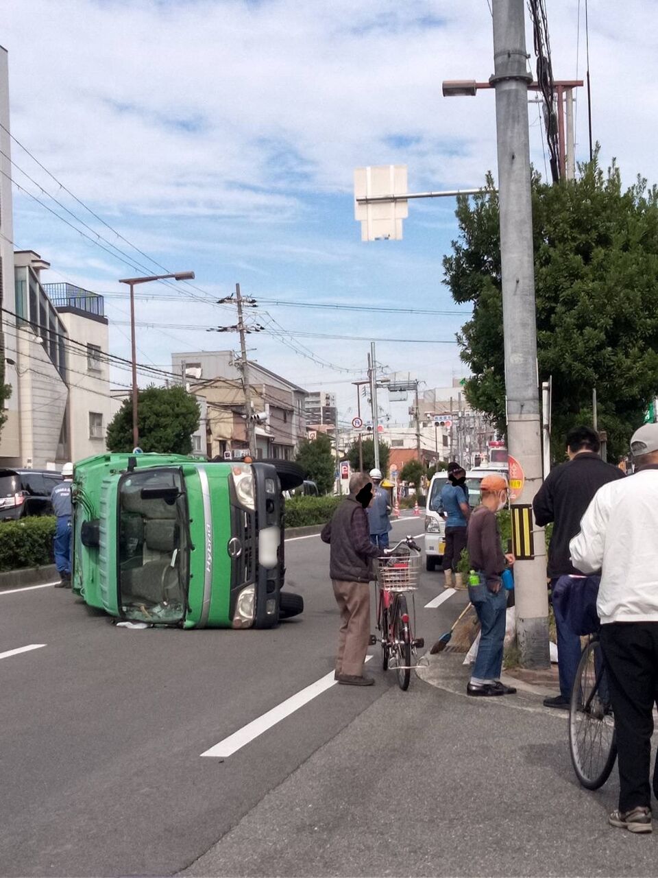 午前10時過ぎにごみ収集車が横転。完全に車線を塞いでるので通行止めになりました。鴫野東2の交差点から直進できません。今里筋の南行き車線は大渋滞中。早めに迂回を。— 城東区 鴫野 音楽教室きじばとの家 ローランド V-Accordionの教本監修者によるレッスン (@kijibatonoie) November 5, 2024