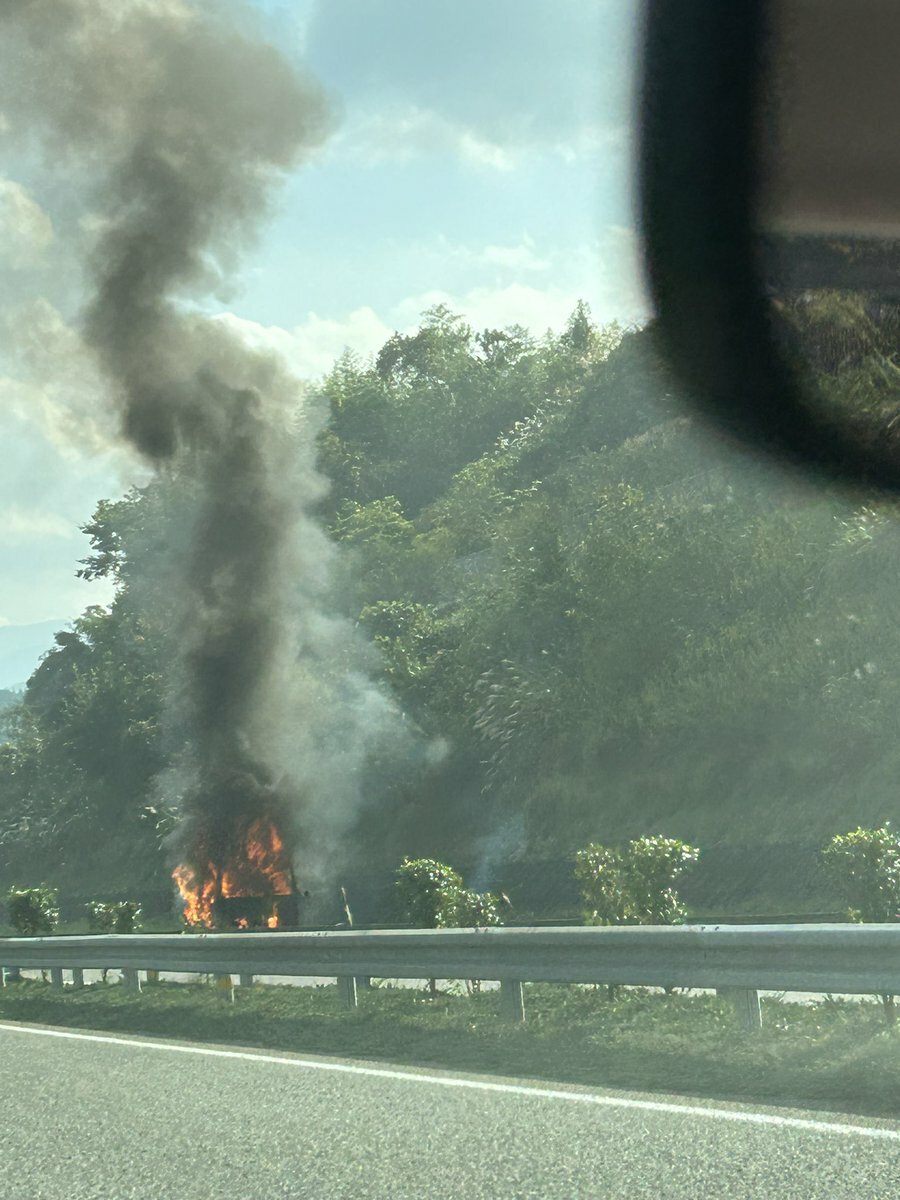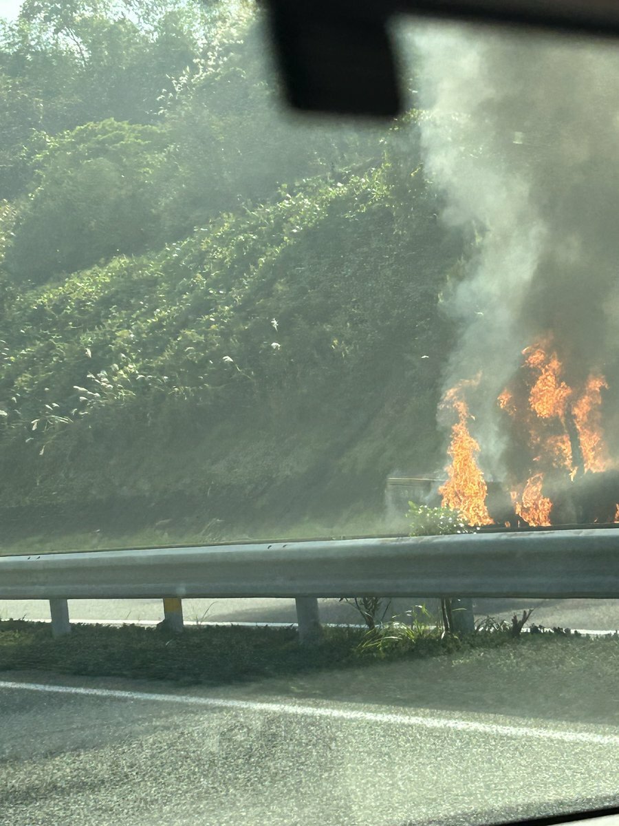 九重インター手前で車が燃えてる pic.twitter.com/OmjrceXwkK