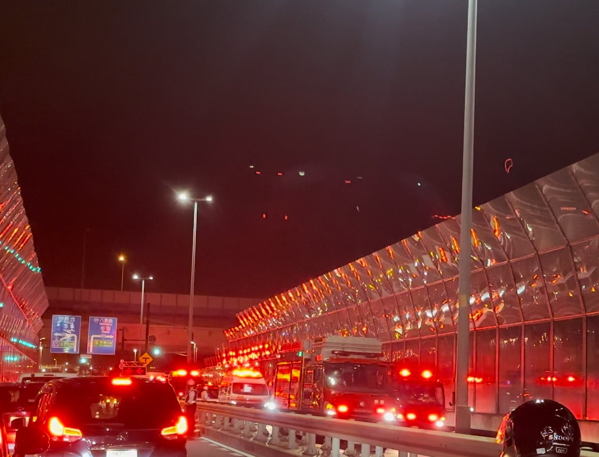 『環2の終点、5台くらいの玉突きで大渋滞』