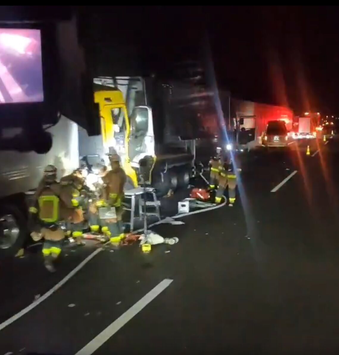 『大型4台の事故っぽいから通る方は気をつけて向かって下さい🙇♂️🙇♂️