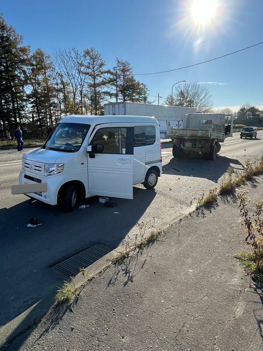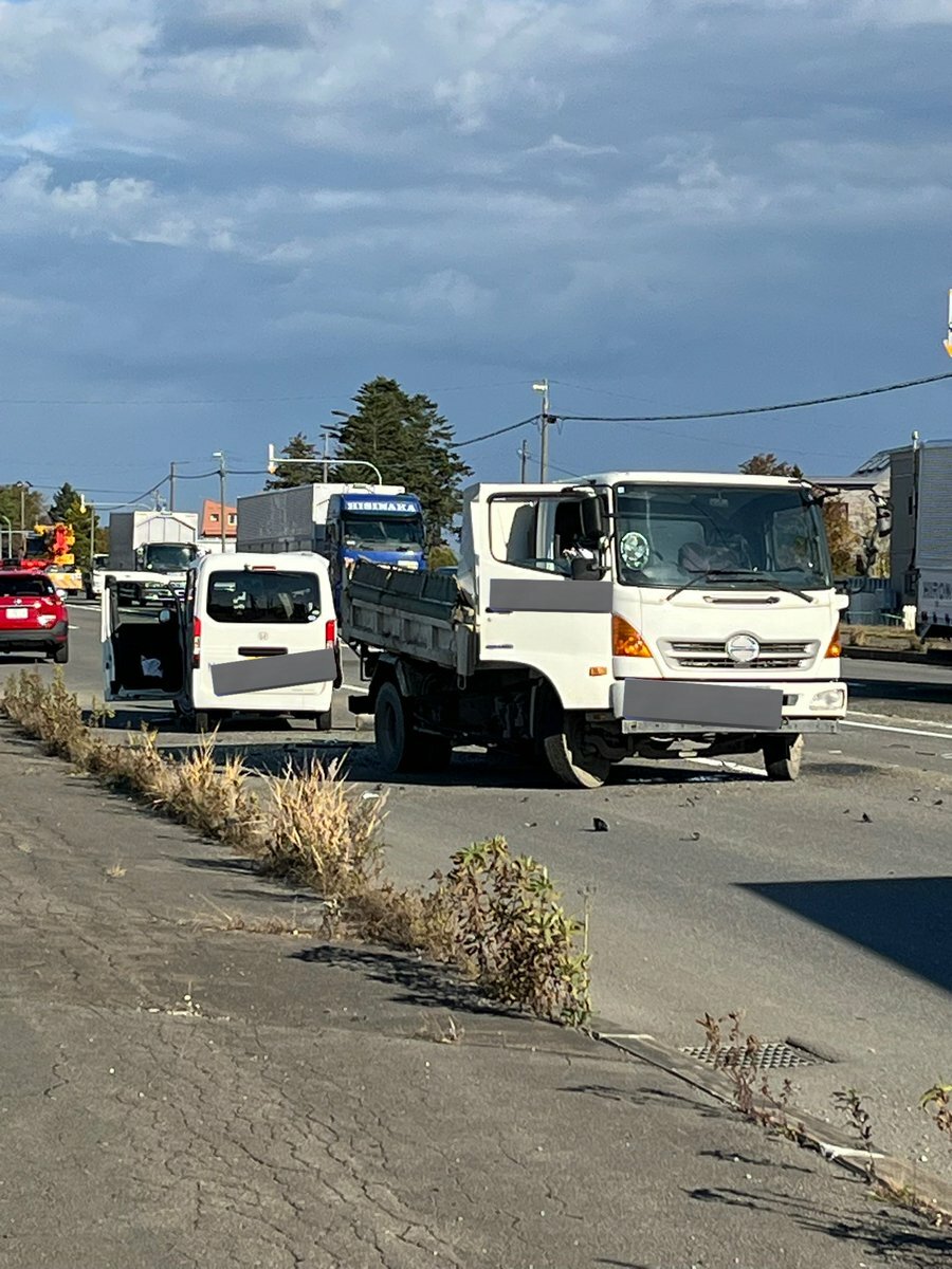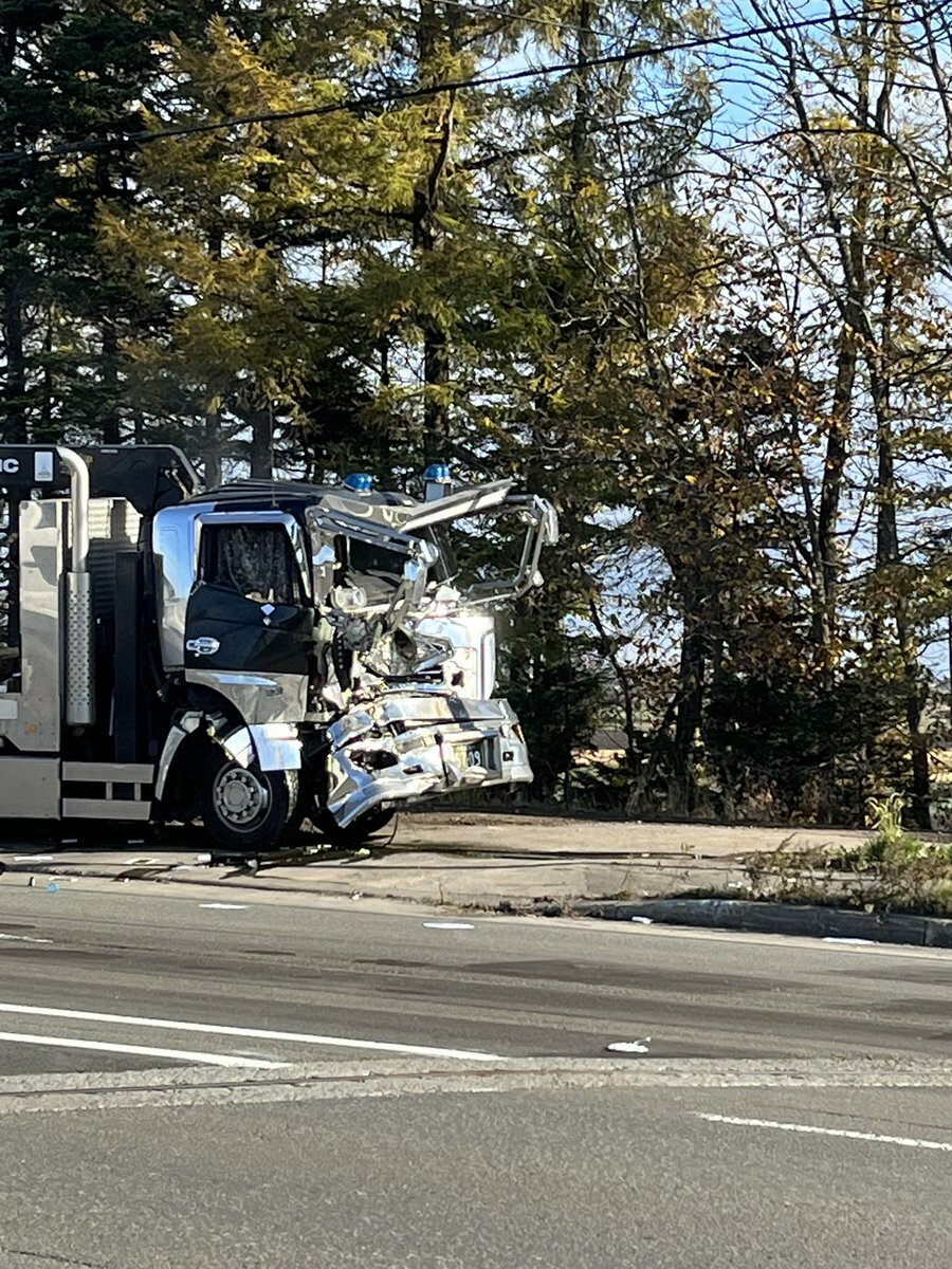【現場の様子】#交通情報 道道46号 江別恵庭線 北海道江別市東野幌付近 破片散乱複数台絡む衝突事故で一時通行止め渋滞11月6日 #渋滞 #北海道 #江別 #北広島