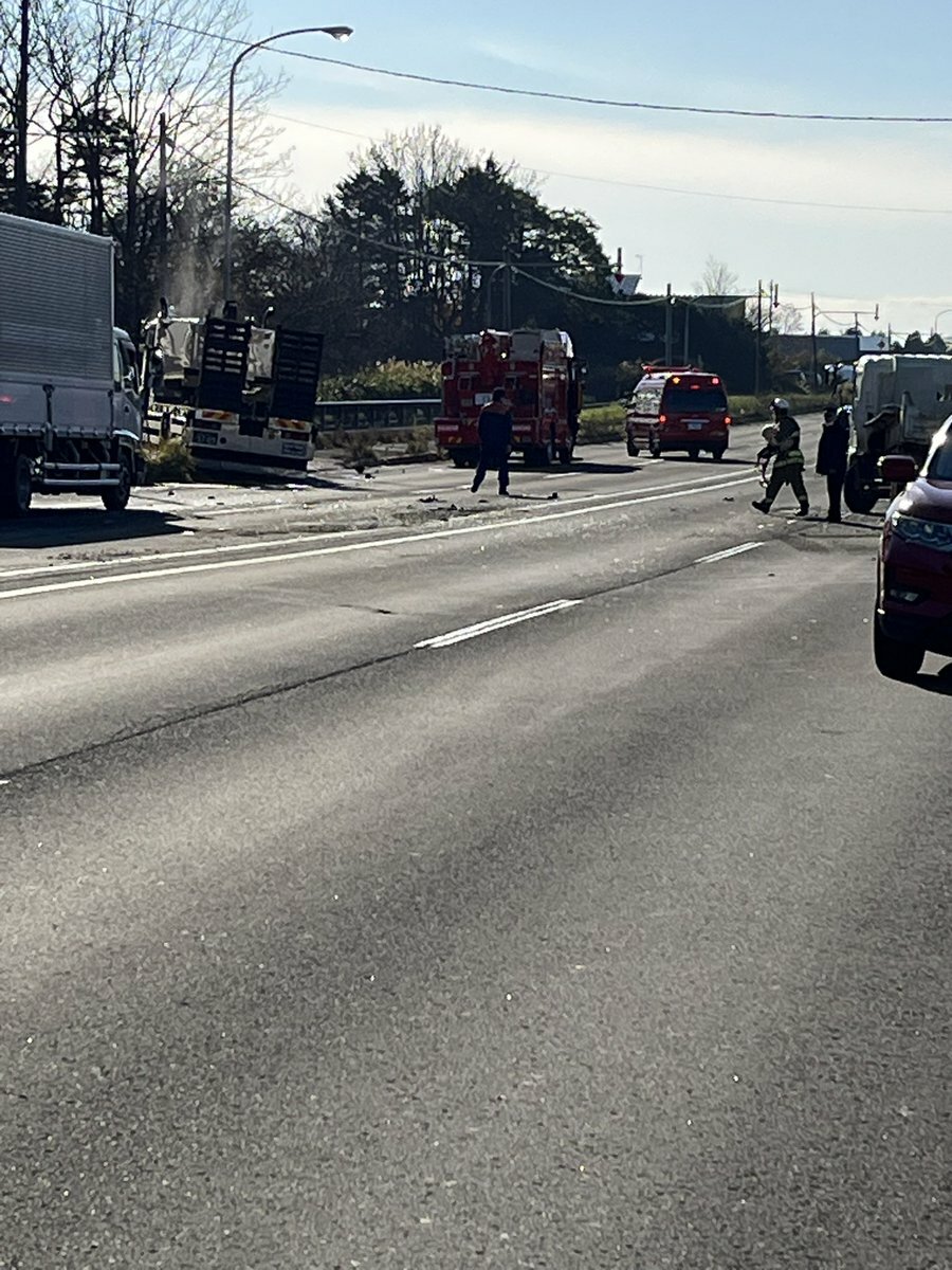 『江別恵庭線で事故、通行止めになってます。