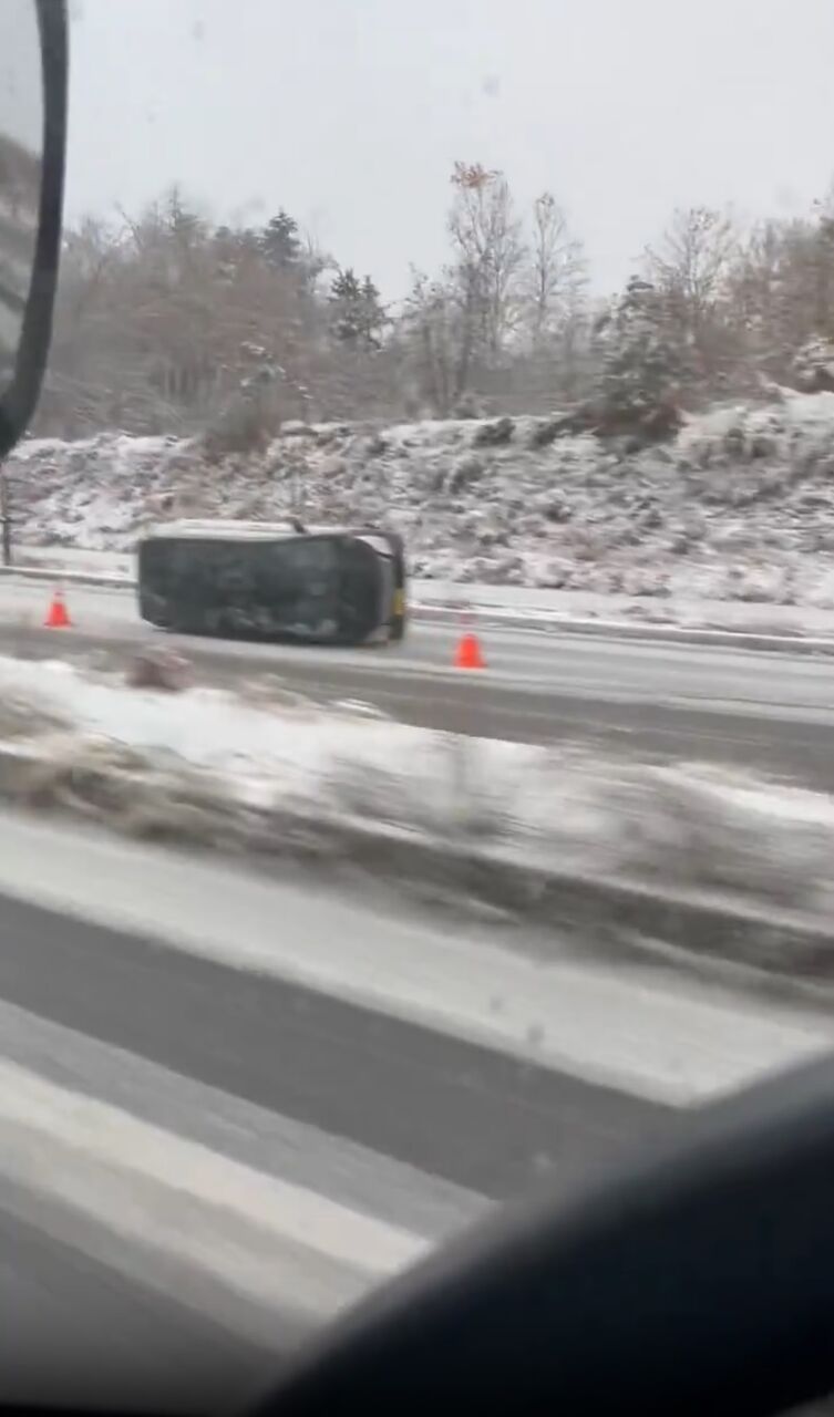 【現場の様子】#交通情報 羊ヶ丘通り 北海道北広島市輪厚工業団地付近 千歳方面 横転事故で規制渋滞11月7日 #北海道 #北広島 #千歳 #札幌 #路面凍結 #アイスバーン #雪