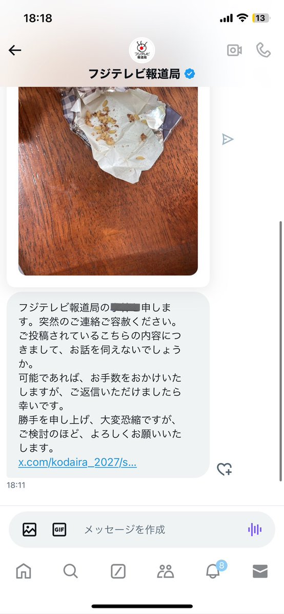 投稿主様にDMを送りご返信をお待ちしている状況です。