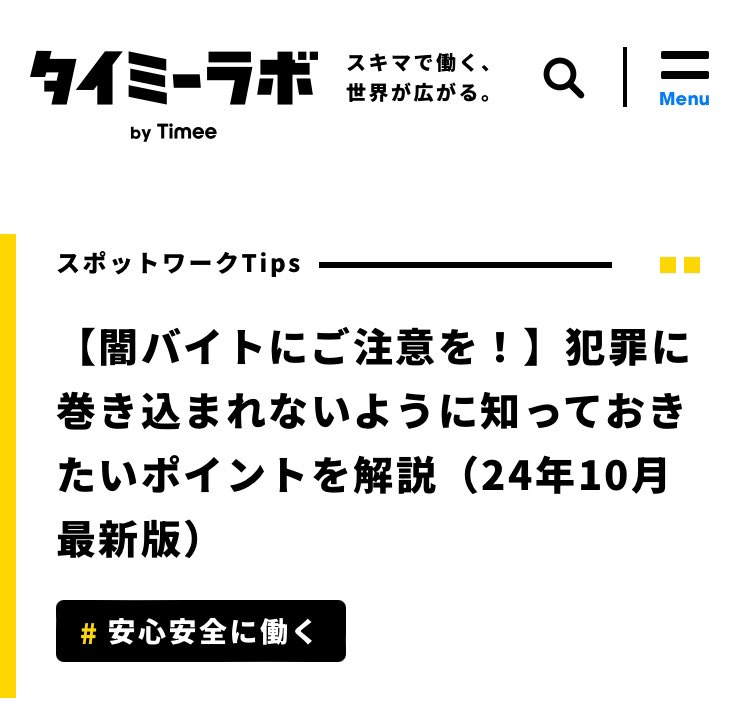 【緊急悲報】タイミーで地獄絵図。 2024/11/8 速報 5: 怪しい求人(現在は削除済らしくほぼ黒確 深夜に猫を探すバイトで時給2000円!🐈 タイミー公式からのありがたいコメント — (@hina416435471) document.write(” + ”); 関連記事 document.write(” + ”); 続きを読む ——— Source: アルファルファモザイク 【緊急悲報】タイミーで地獄絵図。