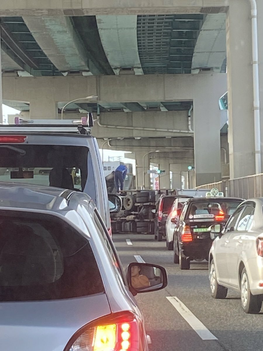 3号線の渋滞はトラック🚚の横転事故やったんか、、、