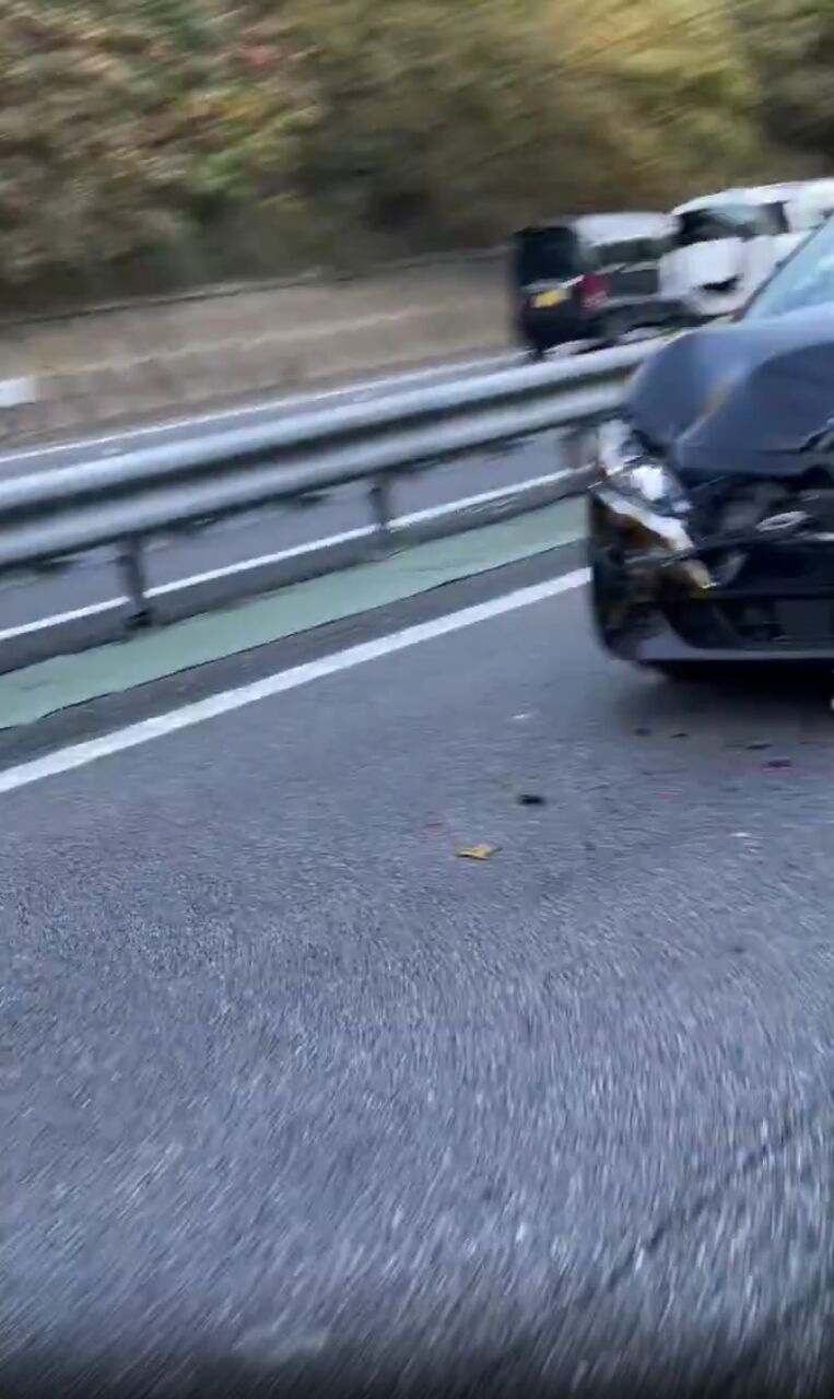 また事故(꒪⌓꒪)今度は嵐山小川出口手前💦
