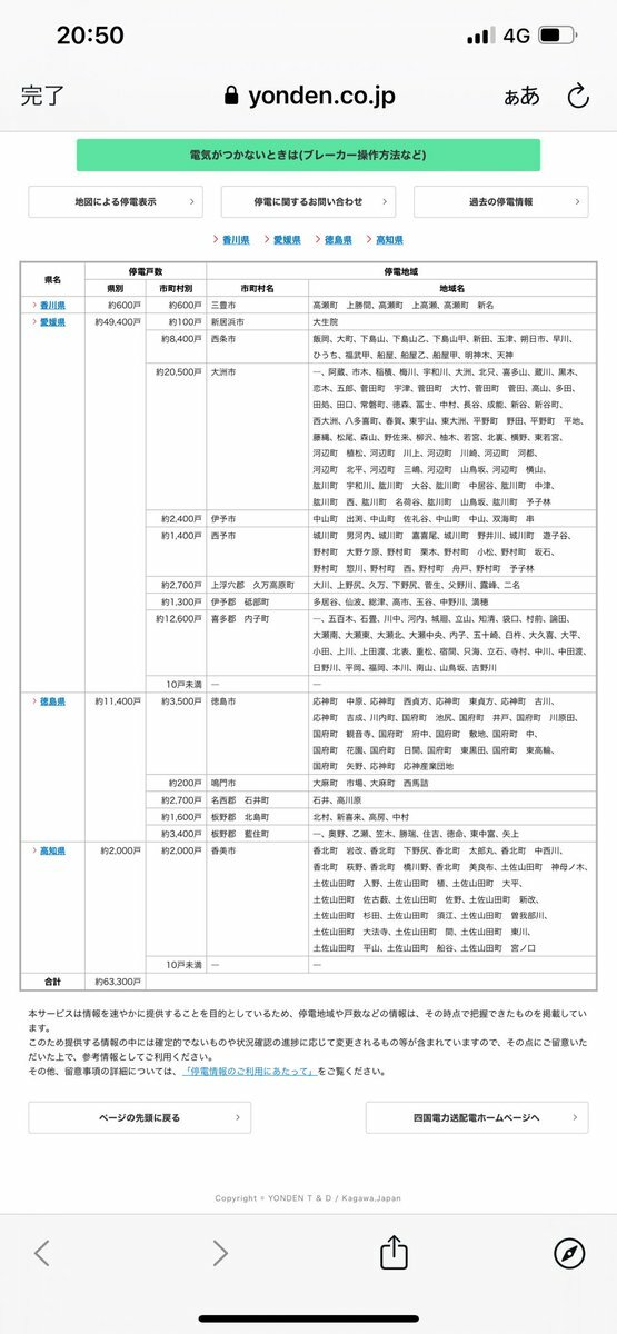 四国着くなり全域大規模停電 pic.twitter.com/zhgzneXldb