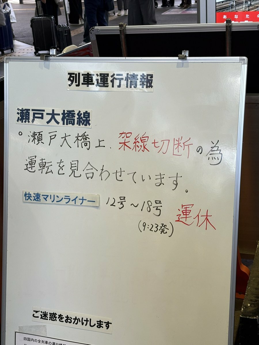 JR瀬戸大橋線🚃架線トラブルにより運行見合わせ