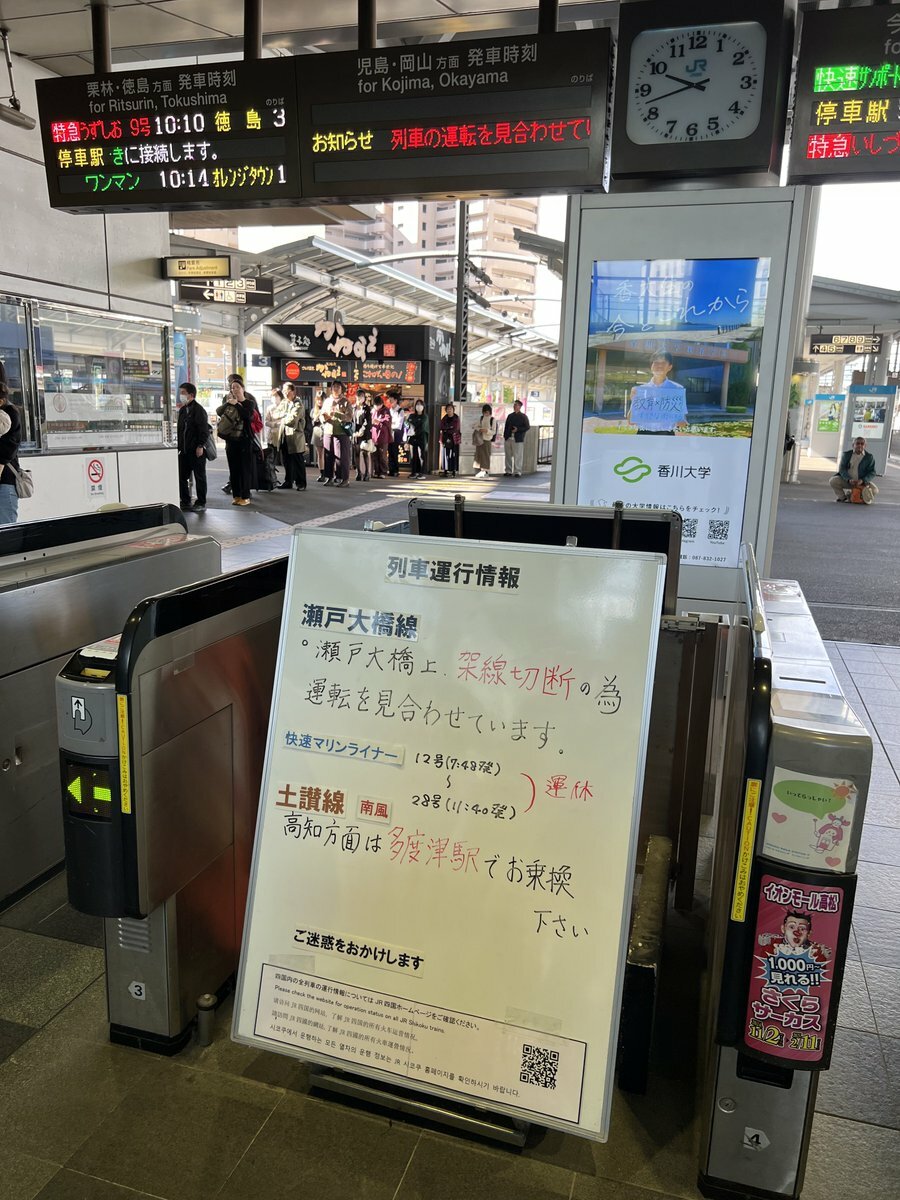 快速マリンライナー・特急しおかぜ・特急南風にも運休・区間運休・遅延が確実に発生します。