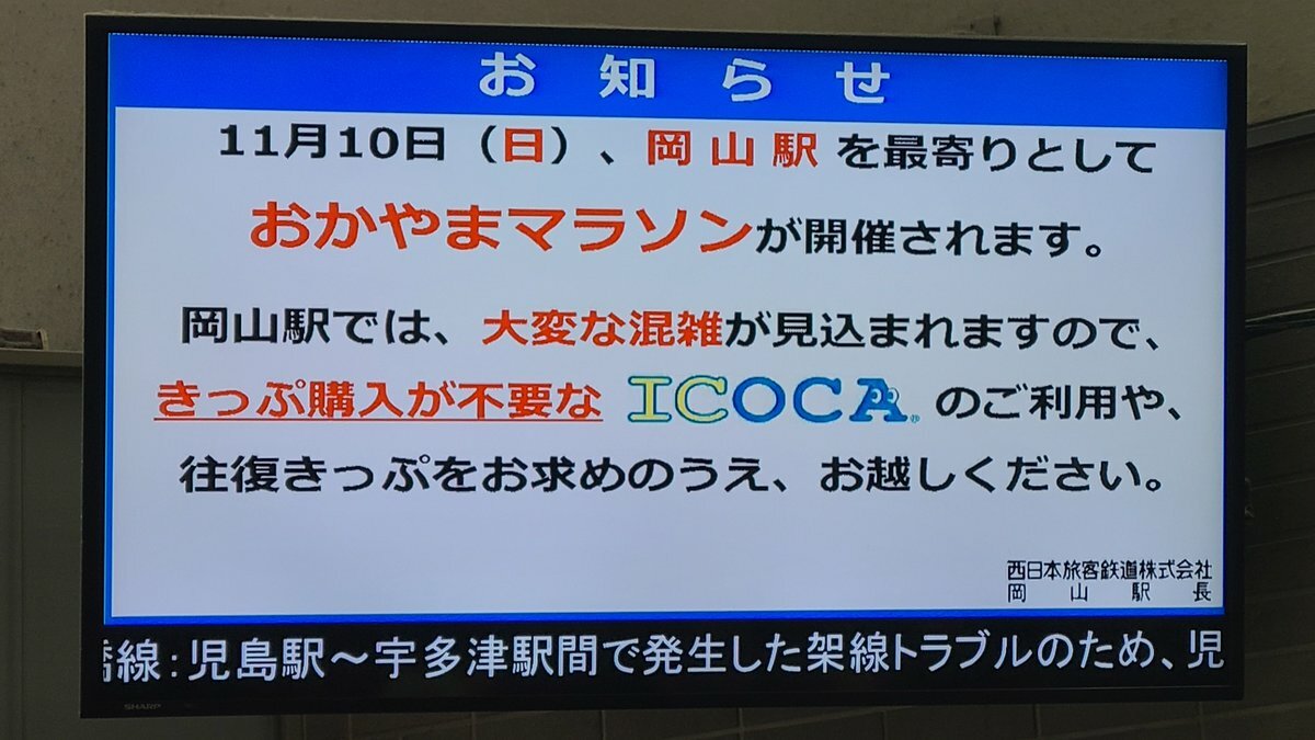 — JR西日本列車運行情報(岡山・福山エリア)【公式】 (@jrwest_Oka_Fuku) November 9, 2024